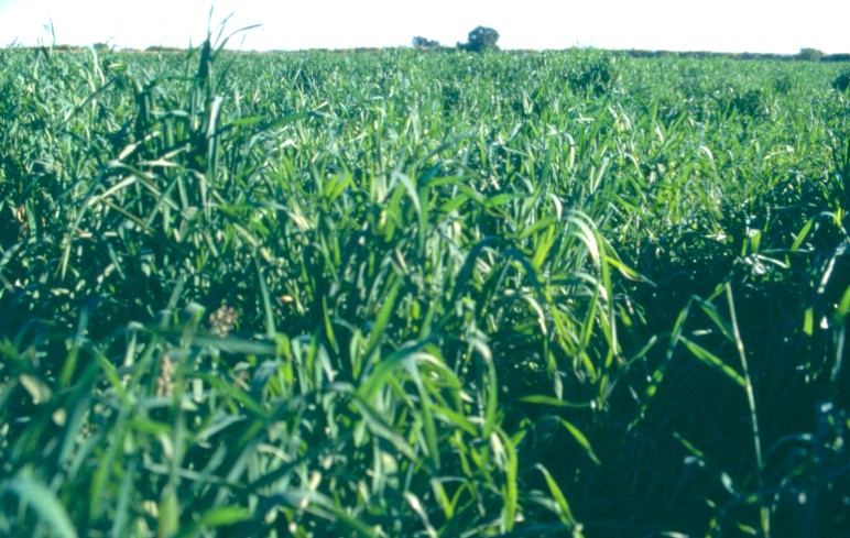 Korog is a hybrid between wheat and rye. Planted pasture at Vaalharts for winter forage.