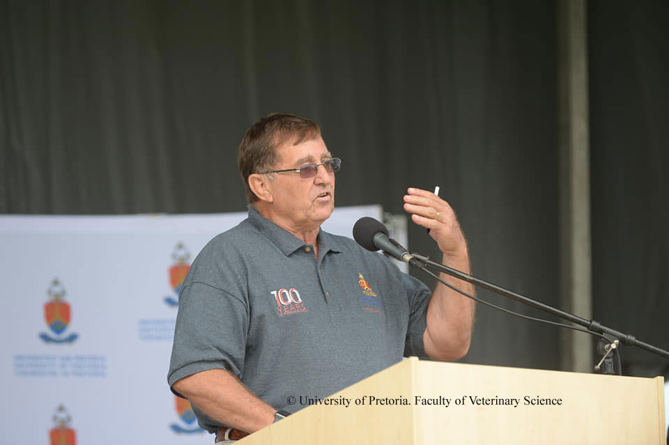 Photo of Prof Gerry Swan, former Dean at the Faculty of Veterinary Science delivering his speech at the Centenary celebration about the birth and growth of the Faculty of Veterinary Science