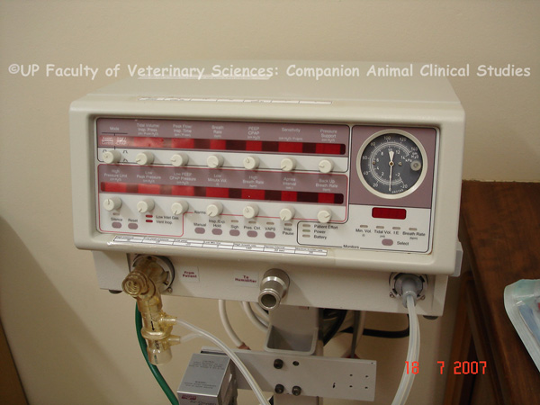PHOTOS 1-3: A syringe driver is a type of infusion pump that are used in hospitals to administer small amounts of medication to a patients. PHOTOS 4-5: Infusion pumps are used in the ICU to administer fluid or medication directly into a patient’s circulatory system by means of a high but controlled pressure. The user simply enters the amount of fluid and the time the fluid needs to be delivered. PHOTO 6: Ventilators are used to assist critically ill patients with breathing. The goal is to provide adequate lung exchange without causing ventilator-induced lung injury. Three main breath patterns are recognised: continuous mandatory ventilation, continuous spontaneous ventilation and intermittent mandatory ventilation. Animals must be very carefully monitored during ventilation. PHOTO 7: A monitor allows the clinician to constantly monitor a patient's heart rate, blood pressure and other physiological components that provides information on the current state of the patient. PHOTO 8: In paediatrics incubators are used for sick puppies and kittens for external warming, oxygen supplementation and air humidification. Incubators can be used in critical care to increase the inspired oxygen concentration and allow observation and treatment of the patient at the same time. Incubators also humidify inspired gases and warm the patient. PHOTO 9: The veterinary laboratory is a place that is equipped to do diagnostic tests, to determine the severity of diseases and to assess patients’ responses to treatments.
