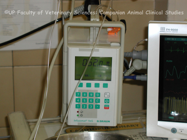 | dc.description.abstract | PHOTOS 1-3: A syringe driver is a type of infusion pump that are used in hospitals to administer small amounts of medication to a patients. PHOTOS 4-5: Infusion pumps are used in the ICU to administer fluid or medication directly into a patient’s circulatory system by means of a high but controlled pressure. The user simply enters the amount of fluid and the time the fluid needs to be delivered. PHOTO 6: Ventilators are used to assist critically ill patients with breathing. The goal is to provide adequate lung exchange without causing ventilator-induced lung injury. Three main breath patterns are recognised: continuous mandatory ventilation, continuous spontaneous ventilation and intermittent mandatory ventilation. Animals must be very carefully monitored during ventilation. PHOTO 7: A monitor allows the clinician to constantly monitor a patient's heart rate, blood pressure and other physiological components that provides information on the current state of the patient. PHOTO 8: In paediatrics incubators are used for sick puppies and kittens for external warming, oxygen supplementation and air humidification. Incubators can be used in critical care to increase the inspired oxygen concentration and allow observation and treatment of the patient at the same time. Incubators also humidify inspired gases and warm the patient. PHOTO 9: The veterinary laboratory is a place that is equipped to do diagnostic tests, to determine the severity of diseases and to assess patients’ responses to treatments. | en |
