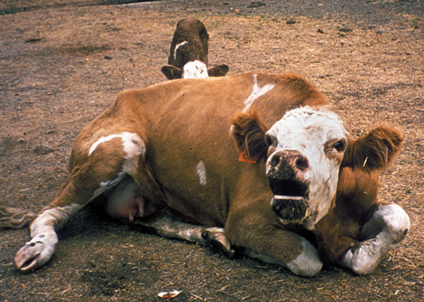 Rabies in a bovine : showing bellowing