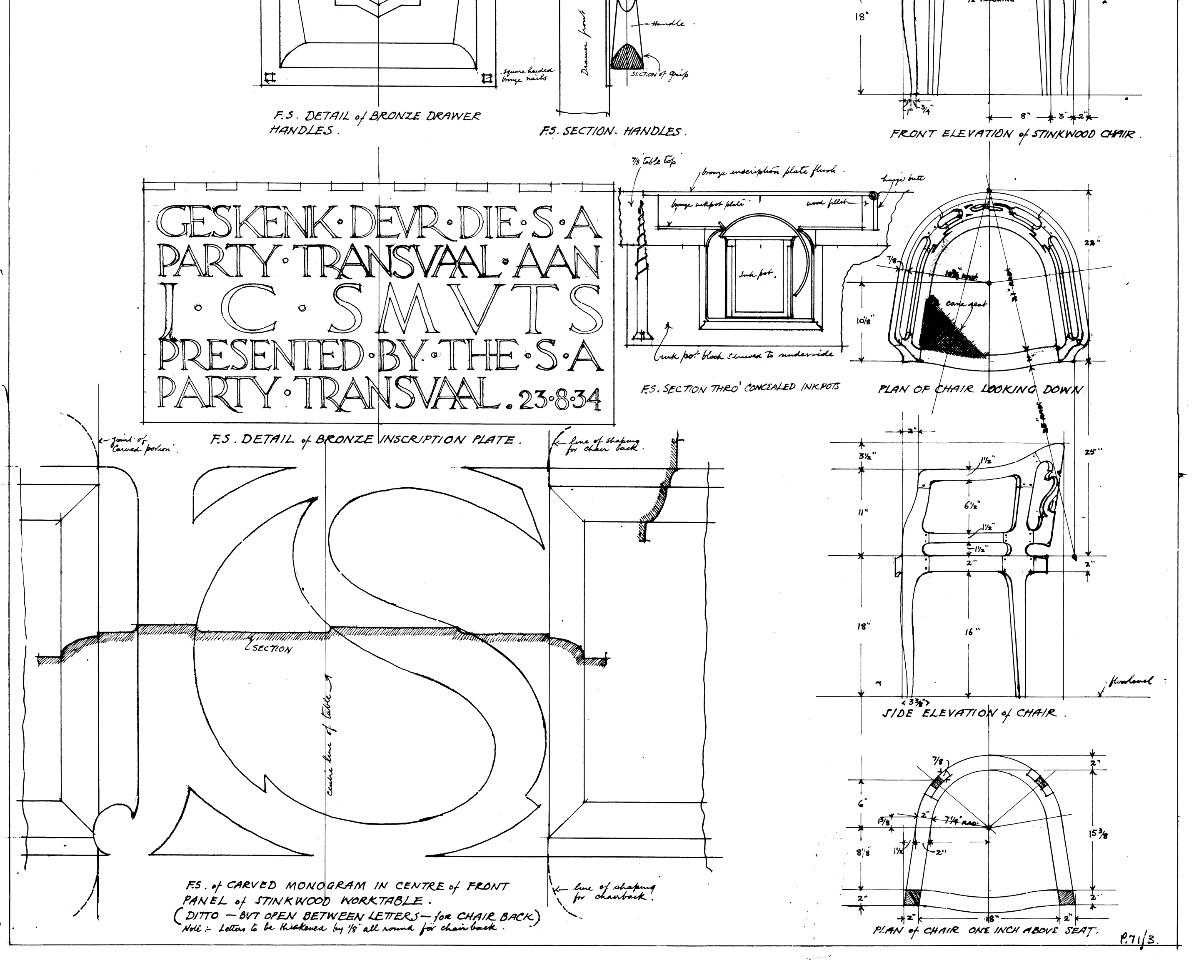 Proposed stinkwood table and chair to be presented to gen. J.C. Smuts