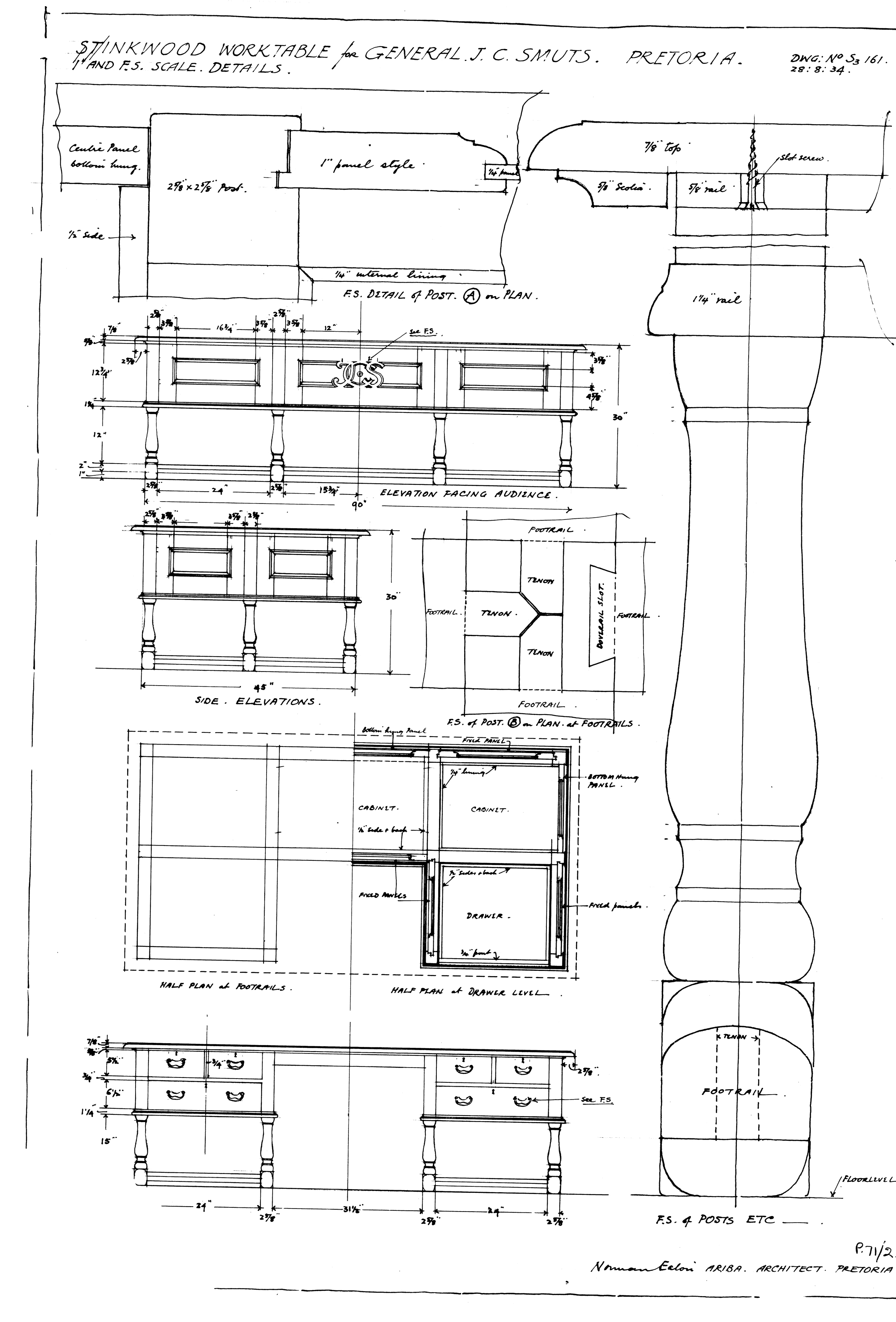 | dc.description | Detailed drawings of a stinkwood table and chair to be presented to General J.C. Smuts by the South African Party, Transvaal | en_US |