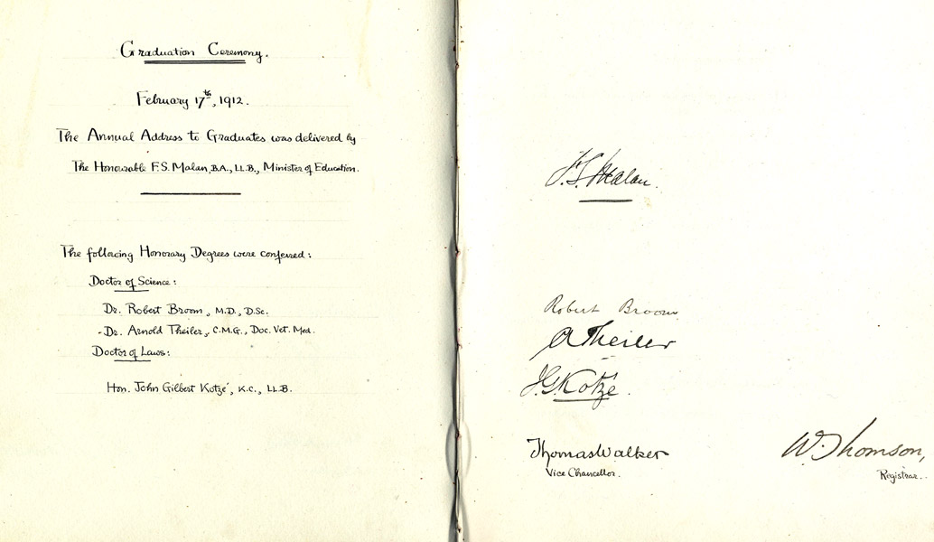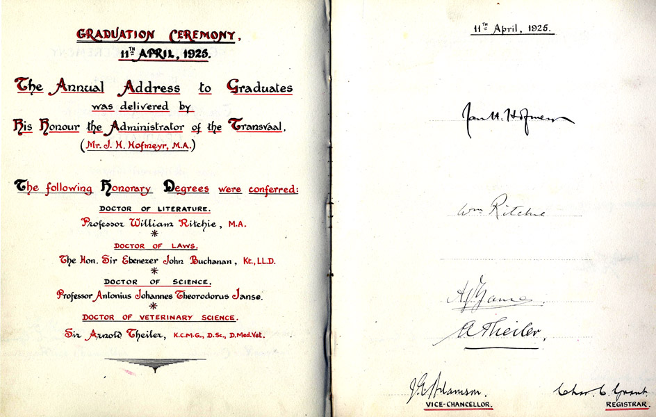 Sir Arnold Theiler, Signatures, Graduation ceremonies, Arnold Theiler