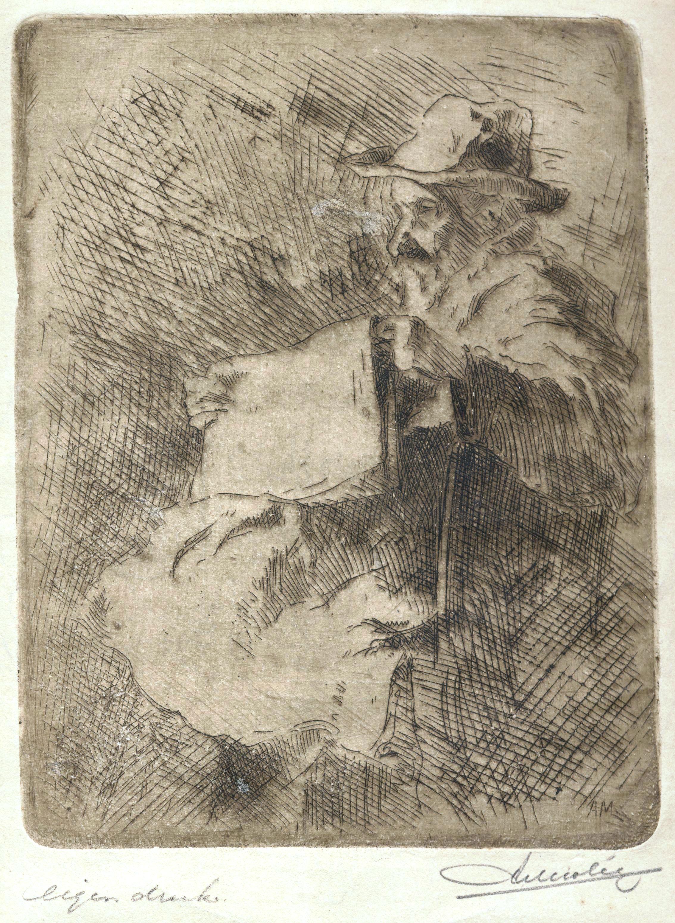 | dc.description | Dry needle etching of a man (profile left) reading a news paper folded in half | en |