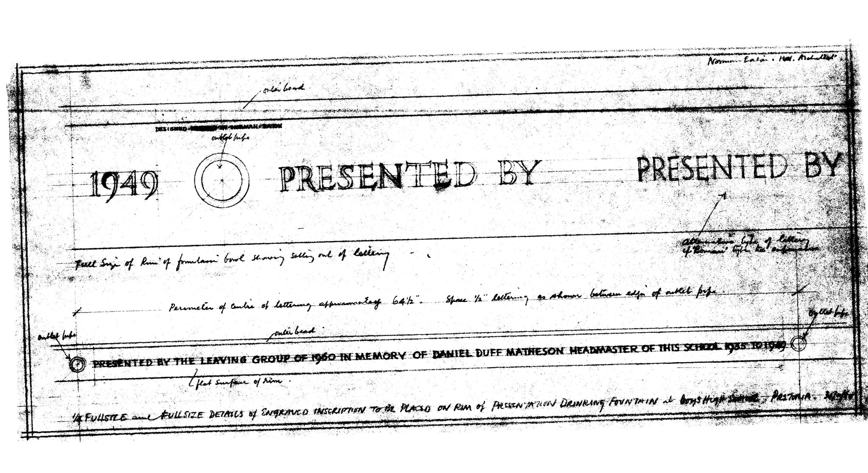 | dc.description.abstract | Inscribed on plaque: "Presented by the leaving group of 1960 in memory of Daniel Duff Matheson, Headmaster of this school 1935-1949." | en_US |
