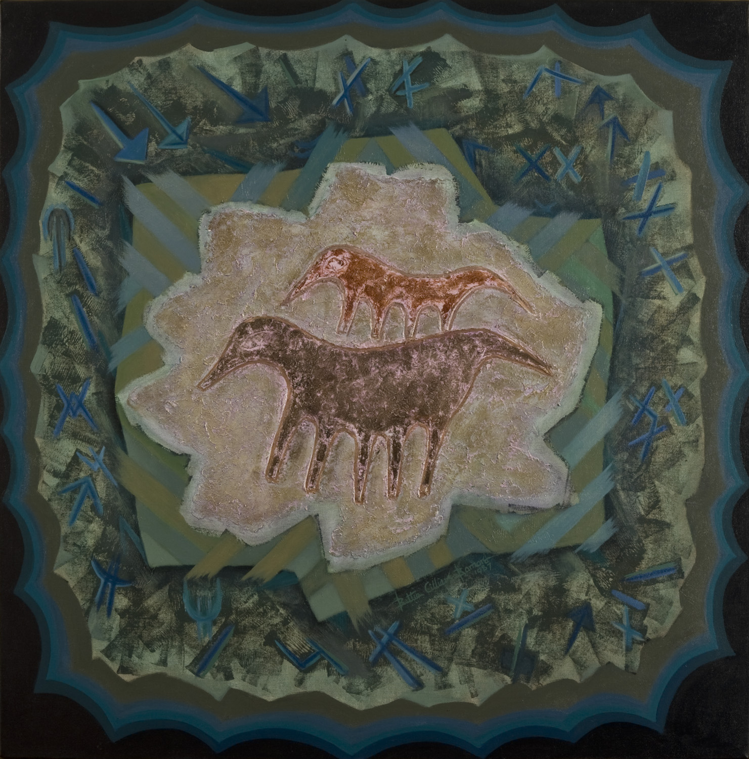 new symbols. Horse-like mythical figures are placed on a jagged light