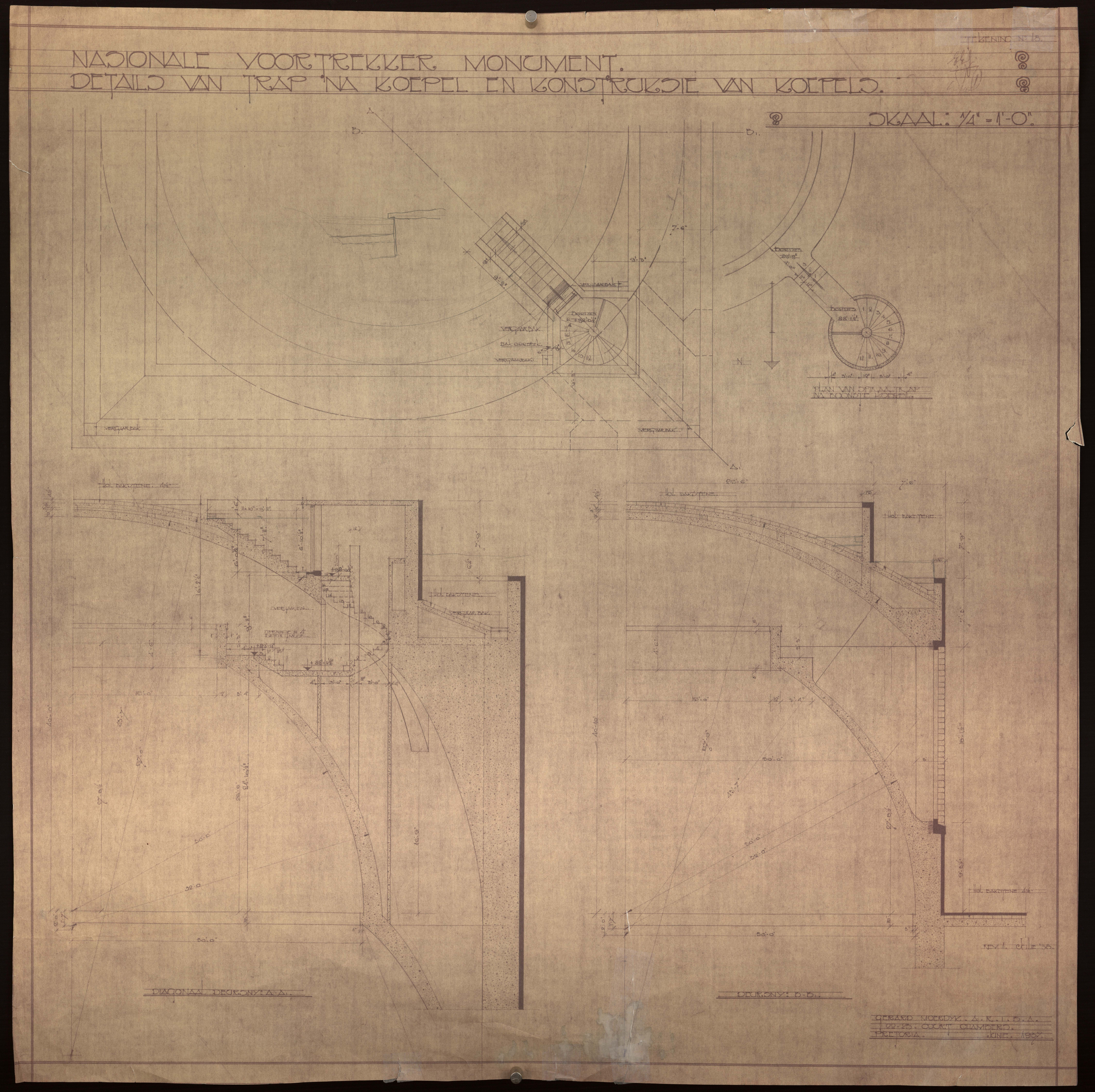 Nasionale Voortrekker Monument : details van trap na koepel en konstruksie van koepel