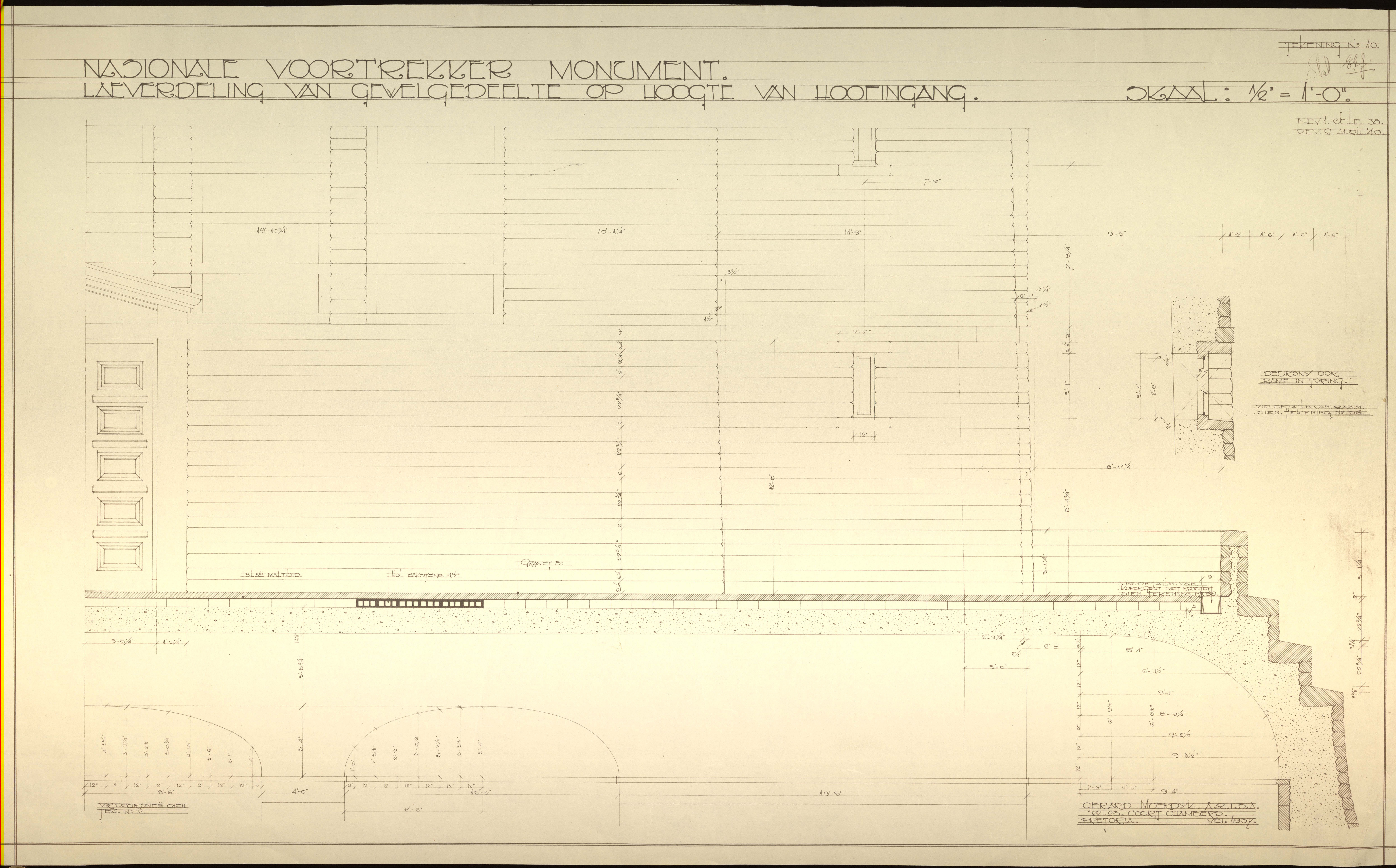 Nasionale Voortrekker Monument : laeverdeling van gewelgedeelte op hoogte van hoofingang