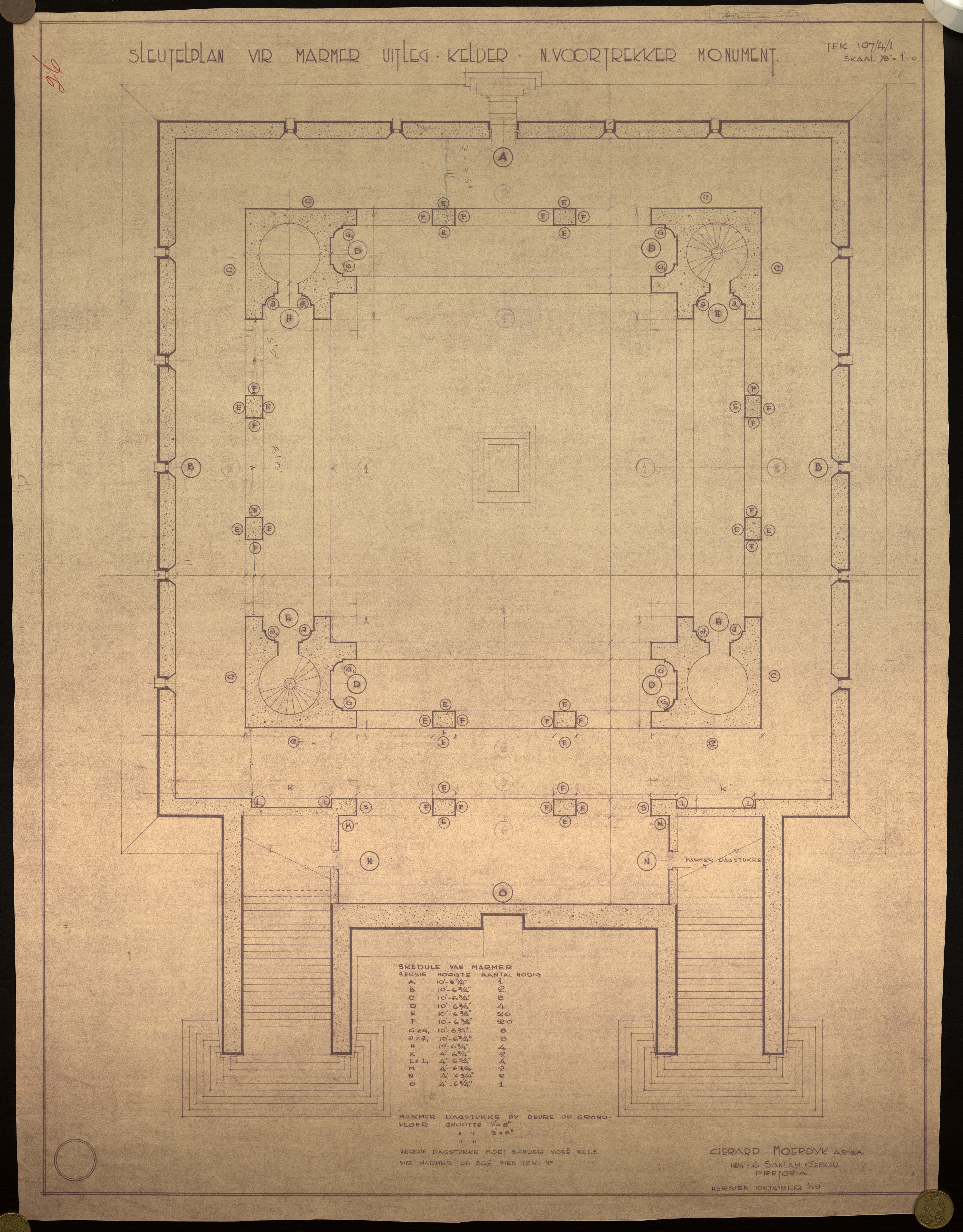 Nasionale Voortrekker Monument : sleutelplan vir marmeruitleg, kelder