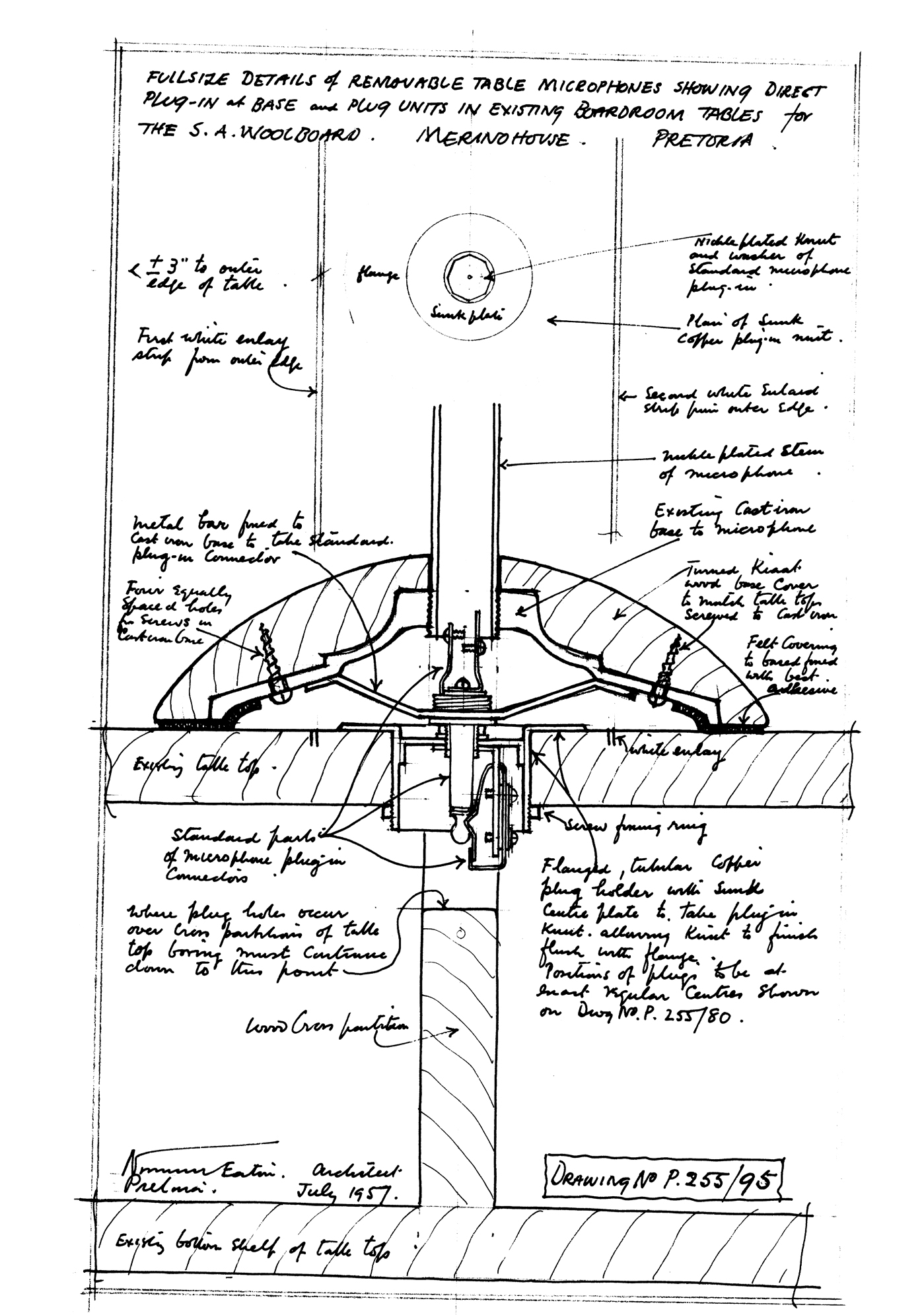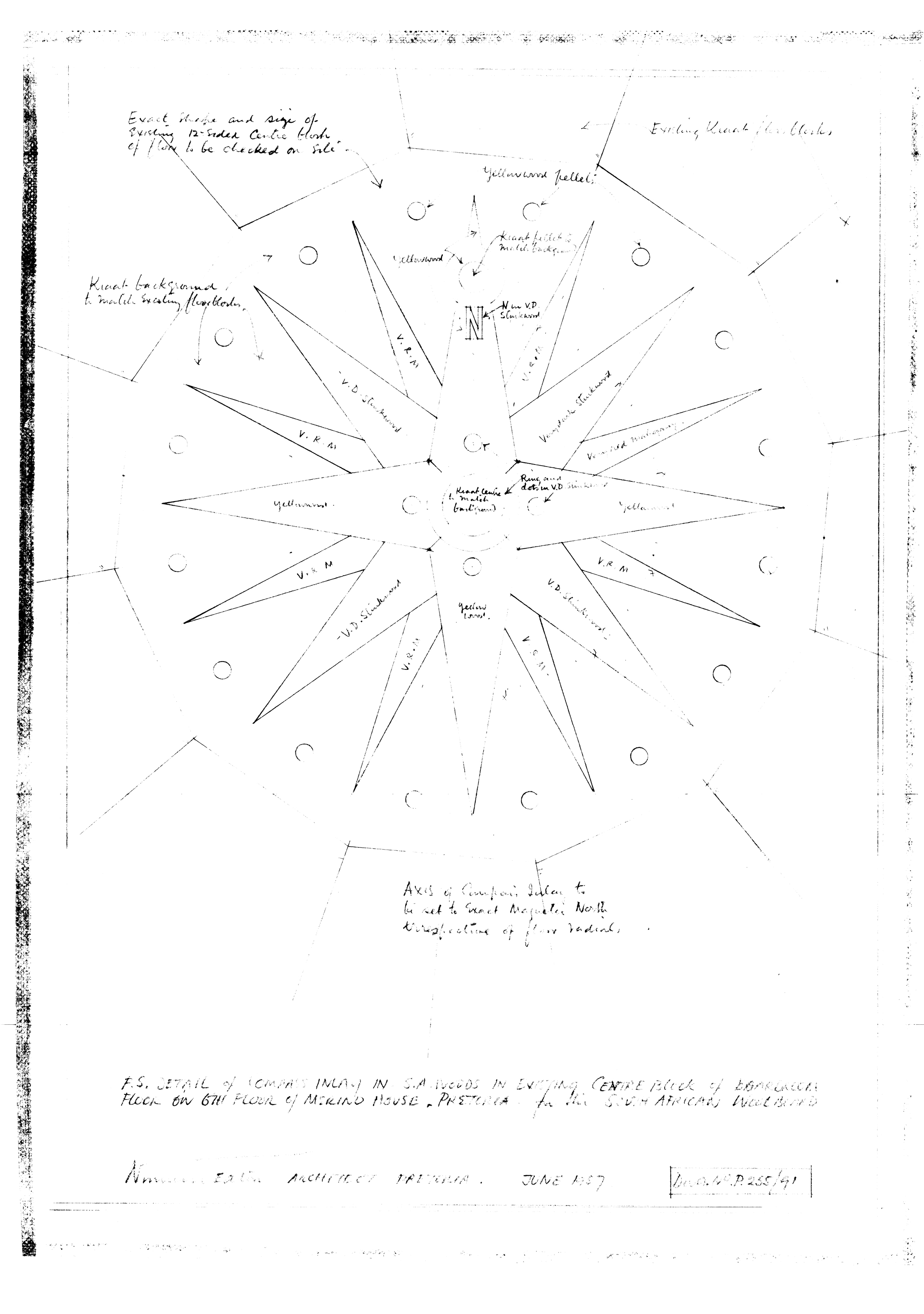 Designs for the compass tile floor inlay, chairs and removable microphones for the new boardroom on 6th floor of Merino Arcade for S.A. Woolboard, Pretoria.