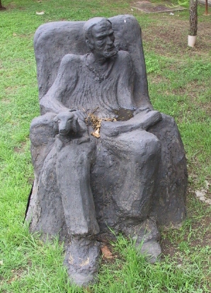 Cement figure of Prof H.P.A. de Boom sitting on a chair with a book and a dog on his lap. The sculpture was created by Marcella de Boom and the work is in the Art collection of the University of Pretoria. Photograph taken with Canon 350D camera at 300dpi. Photograph resized.