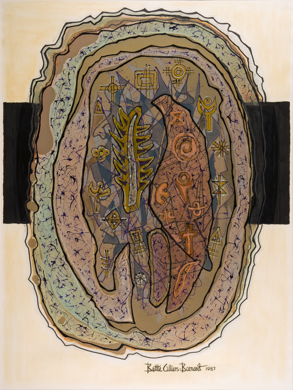 universe. Juxtaposed on this clam-like shape are manifold symbols such as