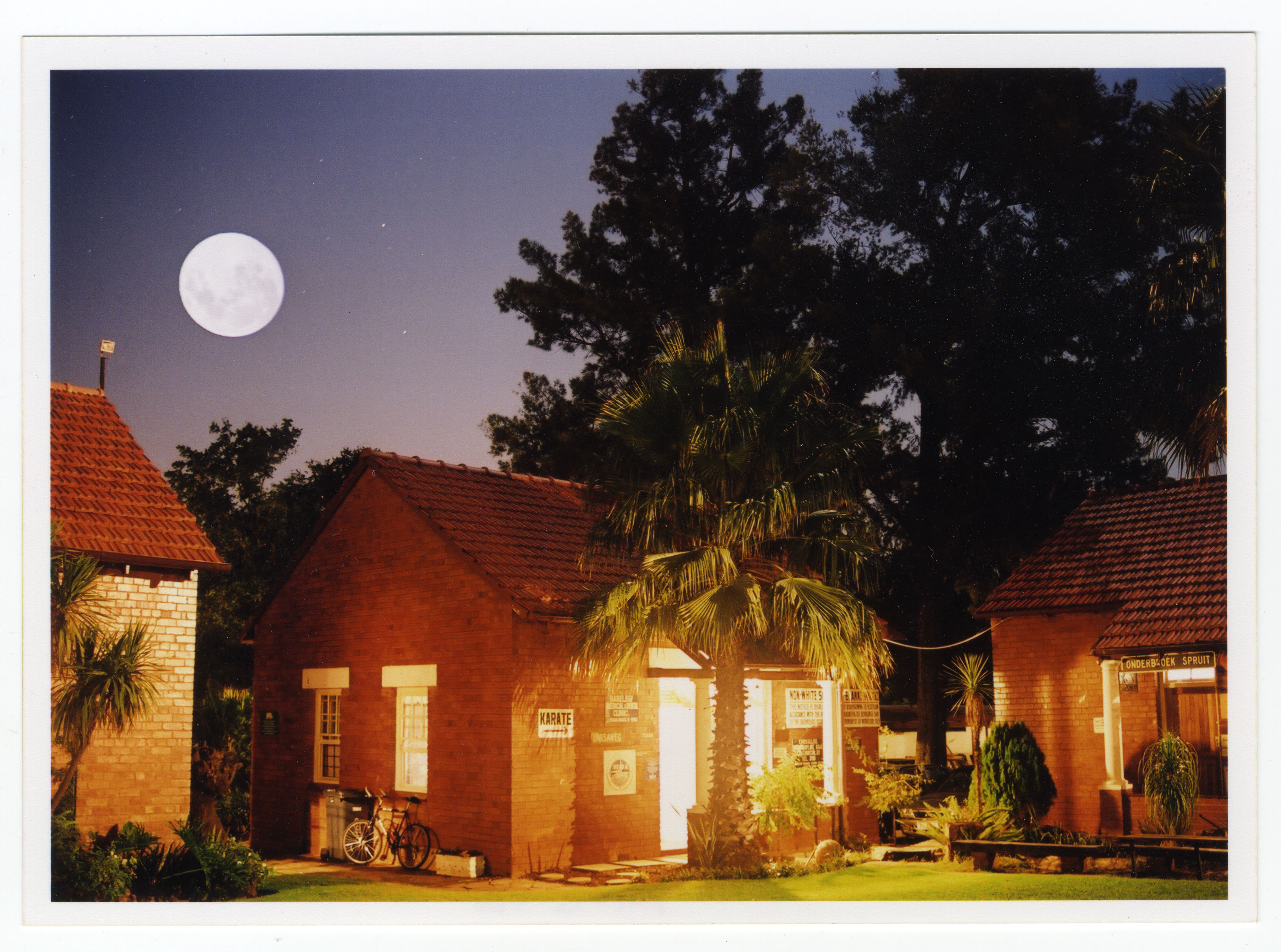 Side view of the Sonop Residence's cottages shot during the night with the lights on, Hatfield Campus, University of Pretoria.