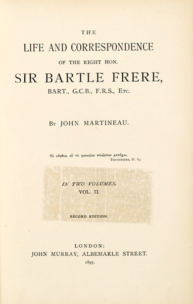 The life and correspondence of the Right Hon. Sir Bartle Frere, Bart., G.C.B., F.R.S., etc.