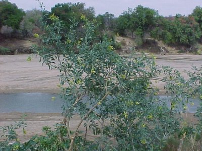 BOTANICAL DESCRIPTION: General: It is a slender, loosely branched evergreen shrub with long, lax shoots, or an erect tree growing up to 5 m high. The stems are weak and the plant lives at most for a few years and is often an annual Leaves: Alternate, smooth, blue-green, leathery and can be very large (up to 20 cm long) on young plants. Flowers: In loose bunches at the ends of branches. Yellow, narrowly tubular and pendulous. Fruit: A papery capsule 2-chambered and contains many small golden-brown seeds. In contrast to flowers, fruits are borne erect.