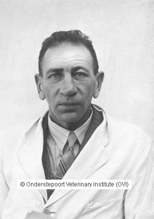 P.J.J. Fourie obtained his MRCVS in Dublin in 1919 as one of a group of students selected by the South African government for training in veterinary science abroad, before training facilities were established in South Africa. He first saw service as Government Veterinary Officer at Grootfontein, Onderstepoort and Vryburg, before settling at Onderstepoort as a lecturer in pharmacology. He also lectured in pathology, medicine and pathological physiology. In 1931 he obtained the degree Dr.Med.Vet. at Utrecht, with a thesis on The haematology and pathology of Haemonchosis in sheep. Later he became Professor in milk and meat hygiene at Onderstepoort, in which capacity he served until his retirement in 1960. He also served as Dean of the Veterinary Faculty for many years. He contributed to, and published on a wide range of veterinary problems, including pioneering studies on congenital porphyrinuria (pink tooth) in cattle. (Source: S2A3 Biographical Database of Southern African Science)