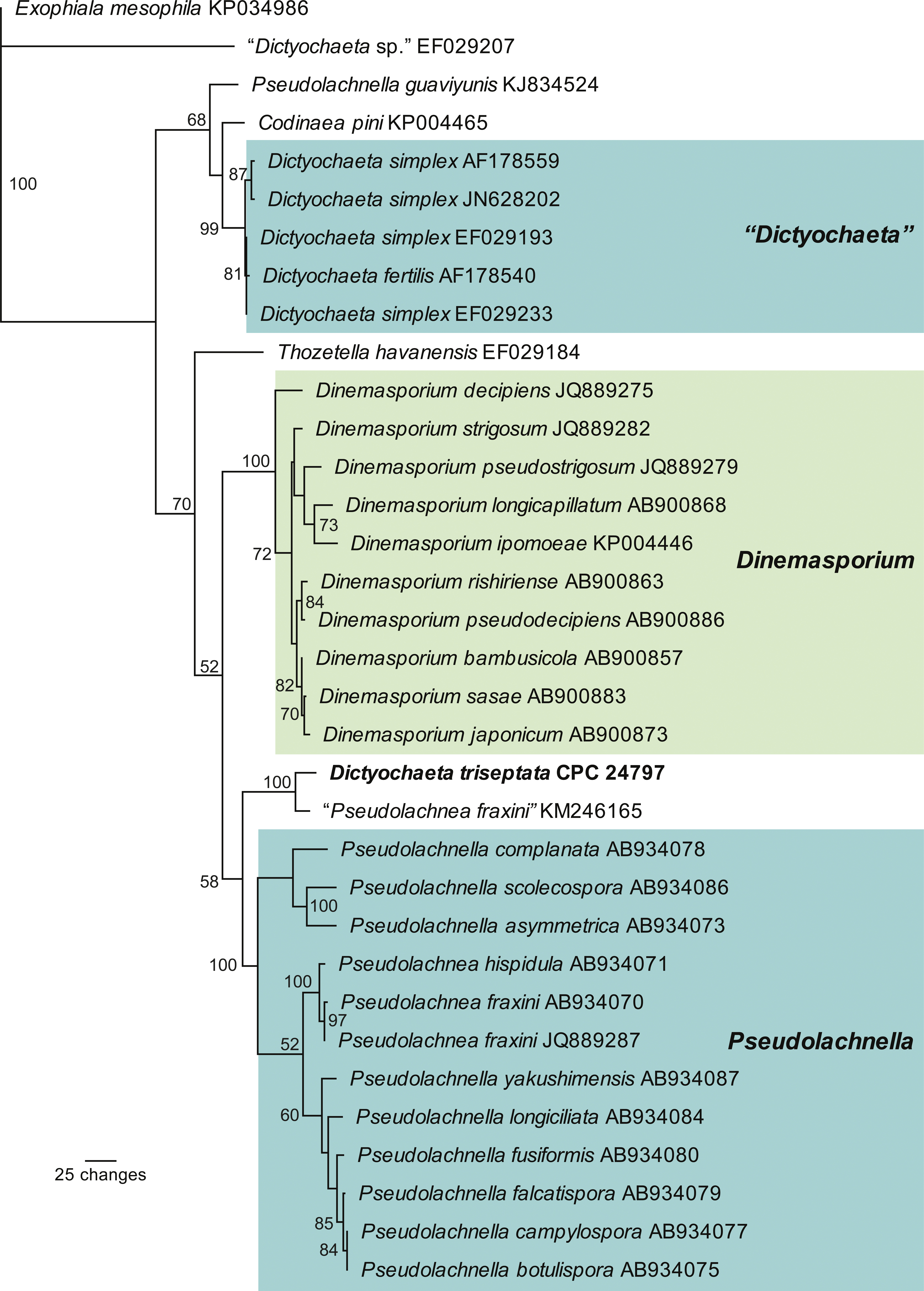 to be paraphyletic, and in need of revision. Dictyochaeta triseptata (Chaetosphaeriaceae, Chaetosphaeriales, Sordariomycetes)