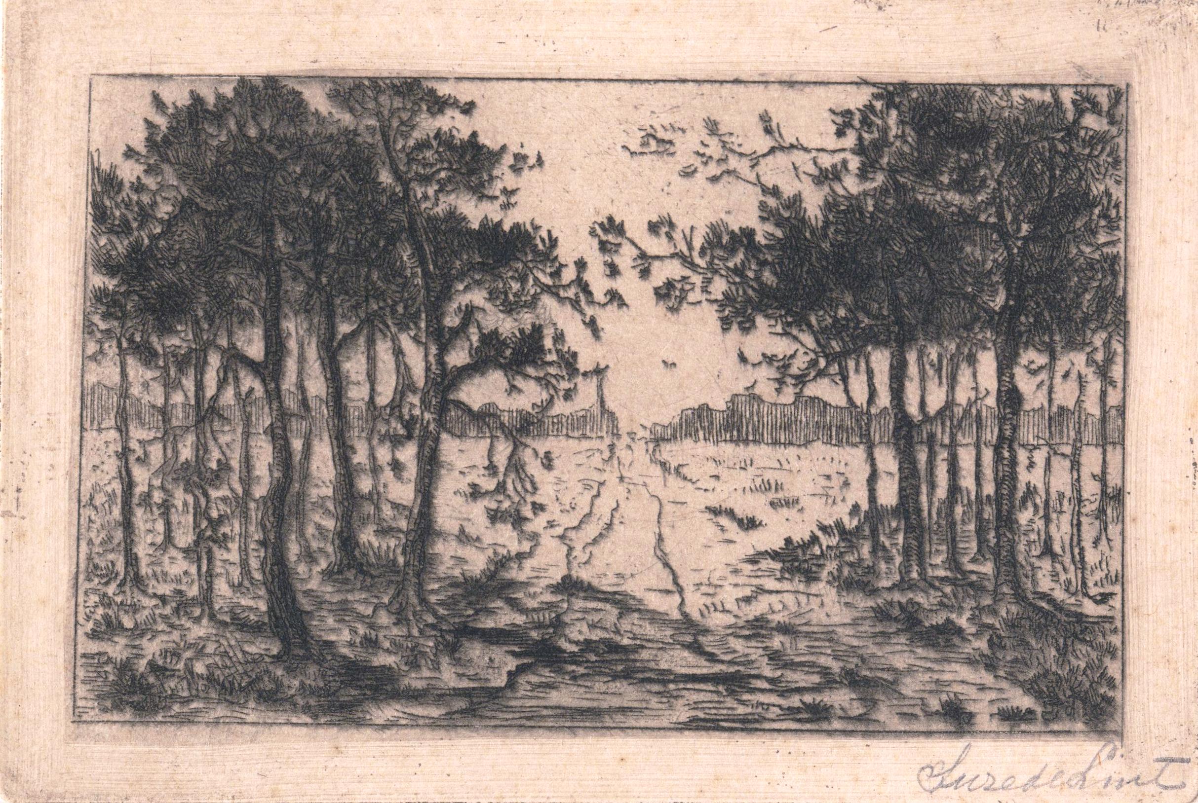 | dc.description | Dry needle etching of a mud road leading through the woods up to a town in the distance. | en |