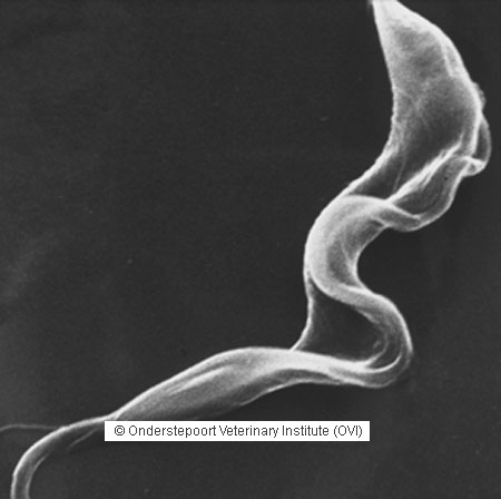 In Africa, protozoon parasites of the genus Trypanosoma are responsible for causing what is probably still the most important disease of domestic livestock in Africa south of the Sahara Desert i.e. African animal trypanosomosis or nagana. The natural hosts of these trypanosomes are many species of wild game which are adapted to the parasites and do not show any symptoms. The trypanosomes occur in the blood stream of infected animals and are carries from animal to animal by bloodsucking biting flies of the genus Glossina.