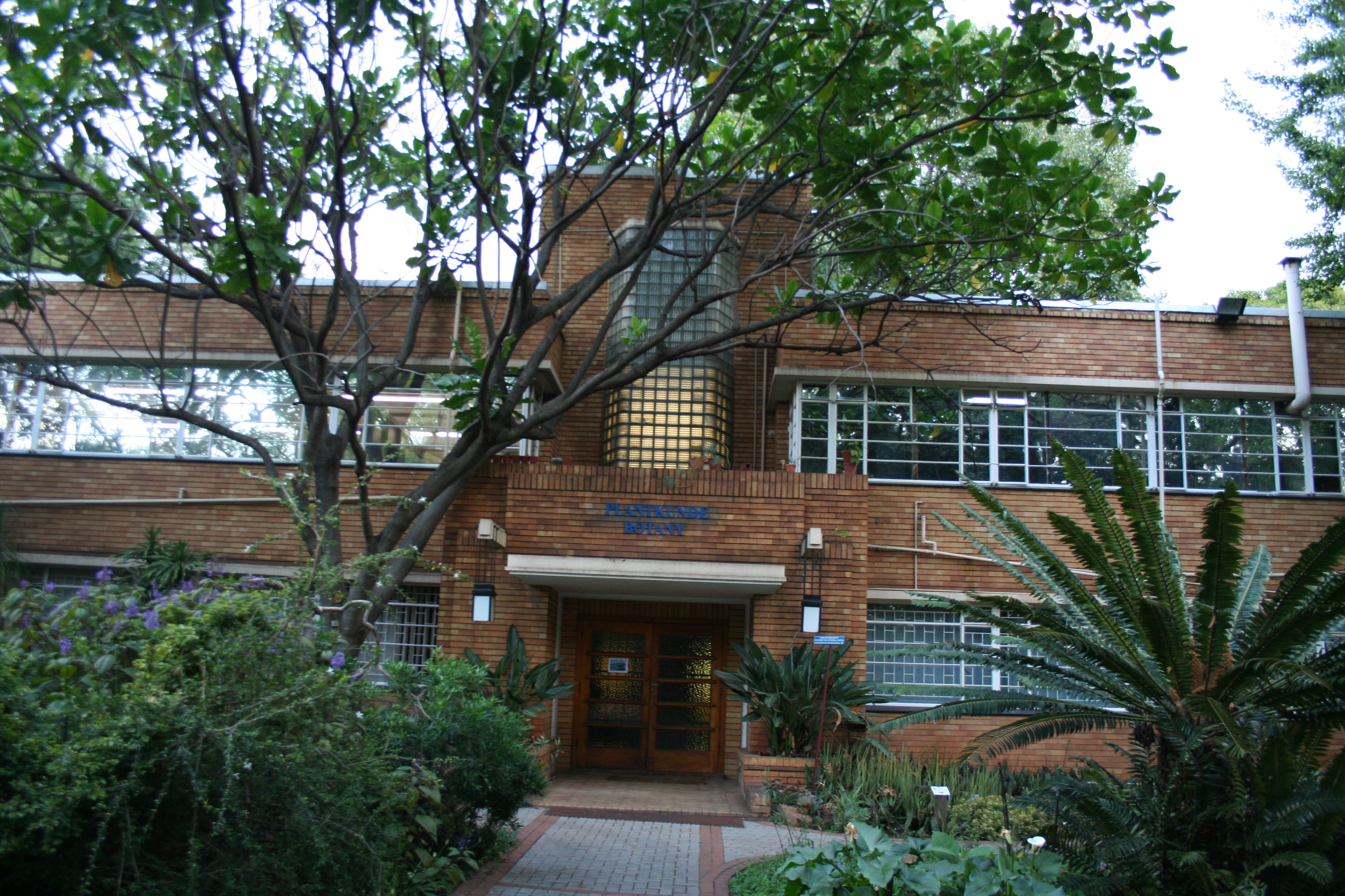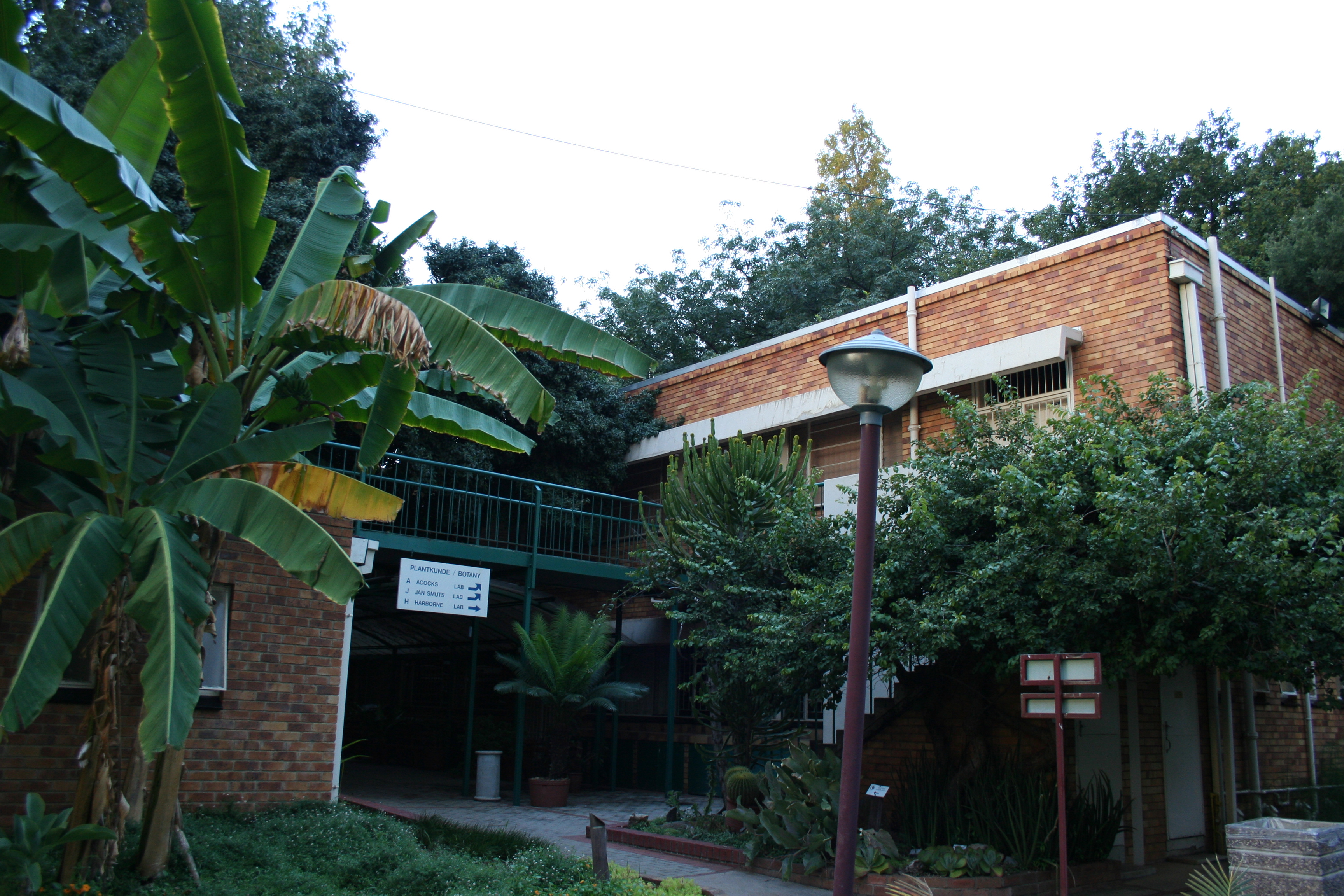 This attractive face brick building with elements of Dutch Brick Modernism was designed by architects Gerard Moerdijk and H Watson in conjunction with Prof B Elbrecht of the Department of Botany. The cornerstone was laid on 10 April 1940 and construction was finished later that same year. Increasing student numbers made it necessary for the building to be extended in 1959 and resulted in an additional wing designed by J Mazureik. The building accommodates the Plant Science Department. The Manie van der Schyff Botanical Garden surrounds the building. The garden is approximately three and a half hectare in extent and contains more than 3 000 plant species, including a complete African cycad collection. A large greenhouse was added in 1956.