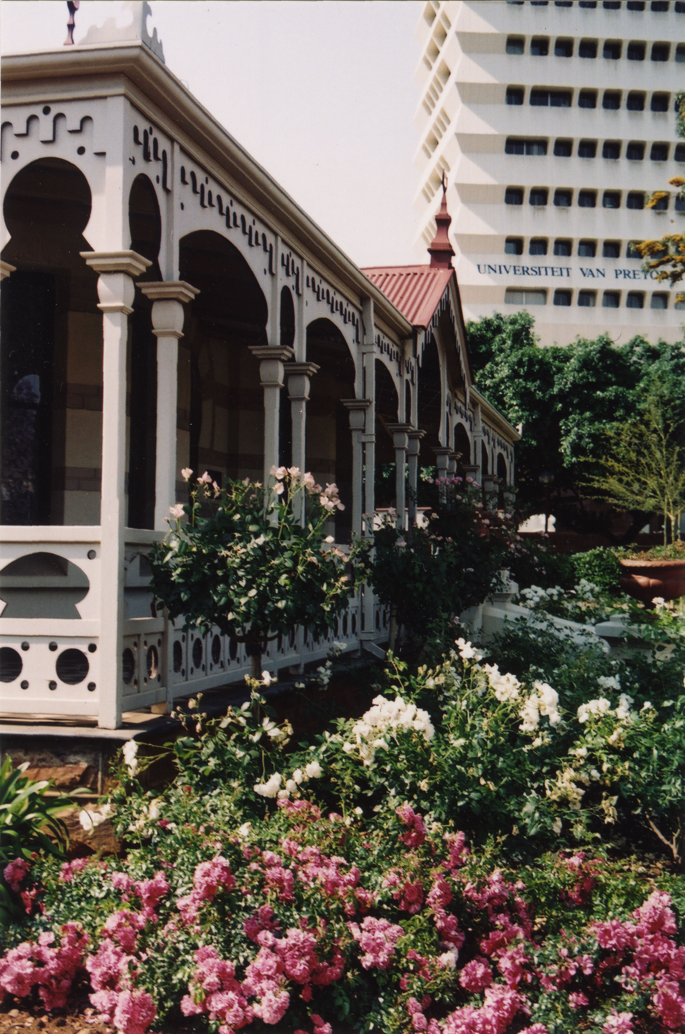 Close up, side view of Kya Rosa with the Human Sciences Building in the background, Hatfield Campus, University of Pretoria.