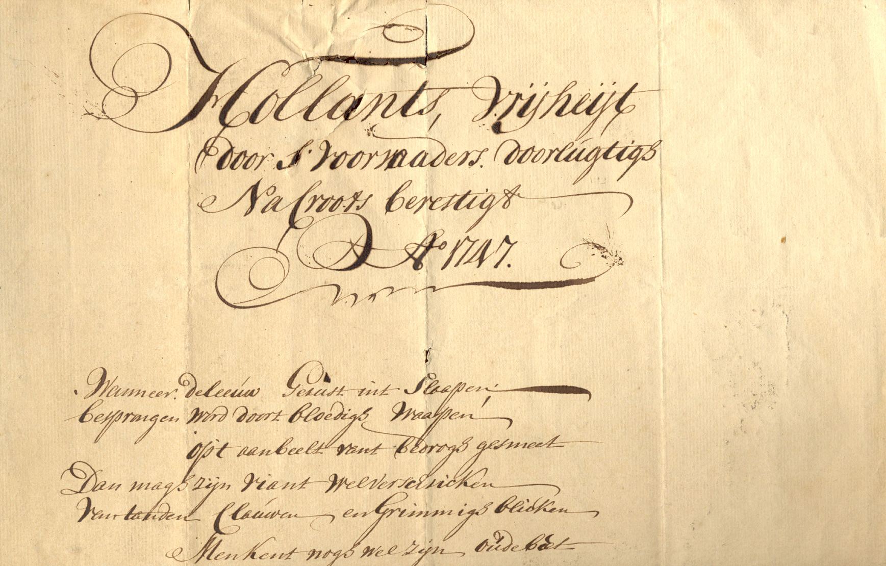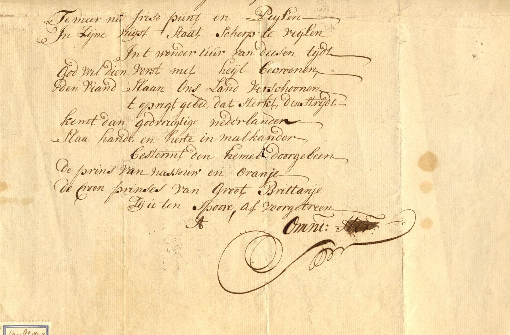 Poem written for Willem IV, viceroy of the United Netherlands, handwritten in 1747.