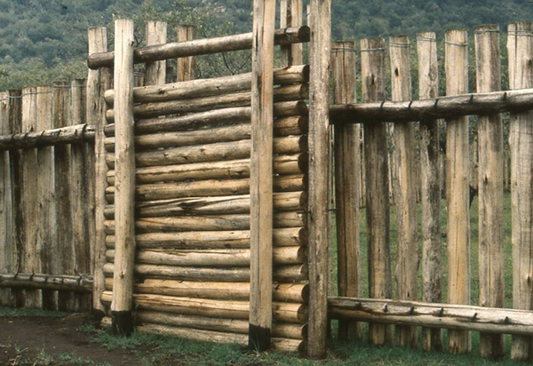Gate of white rhinoceros boma, Maasai-Mara, Kenya - January 1993