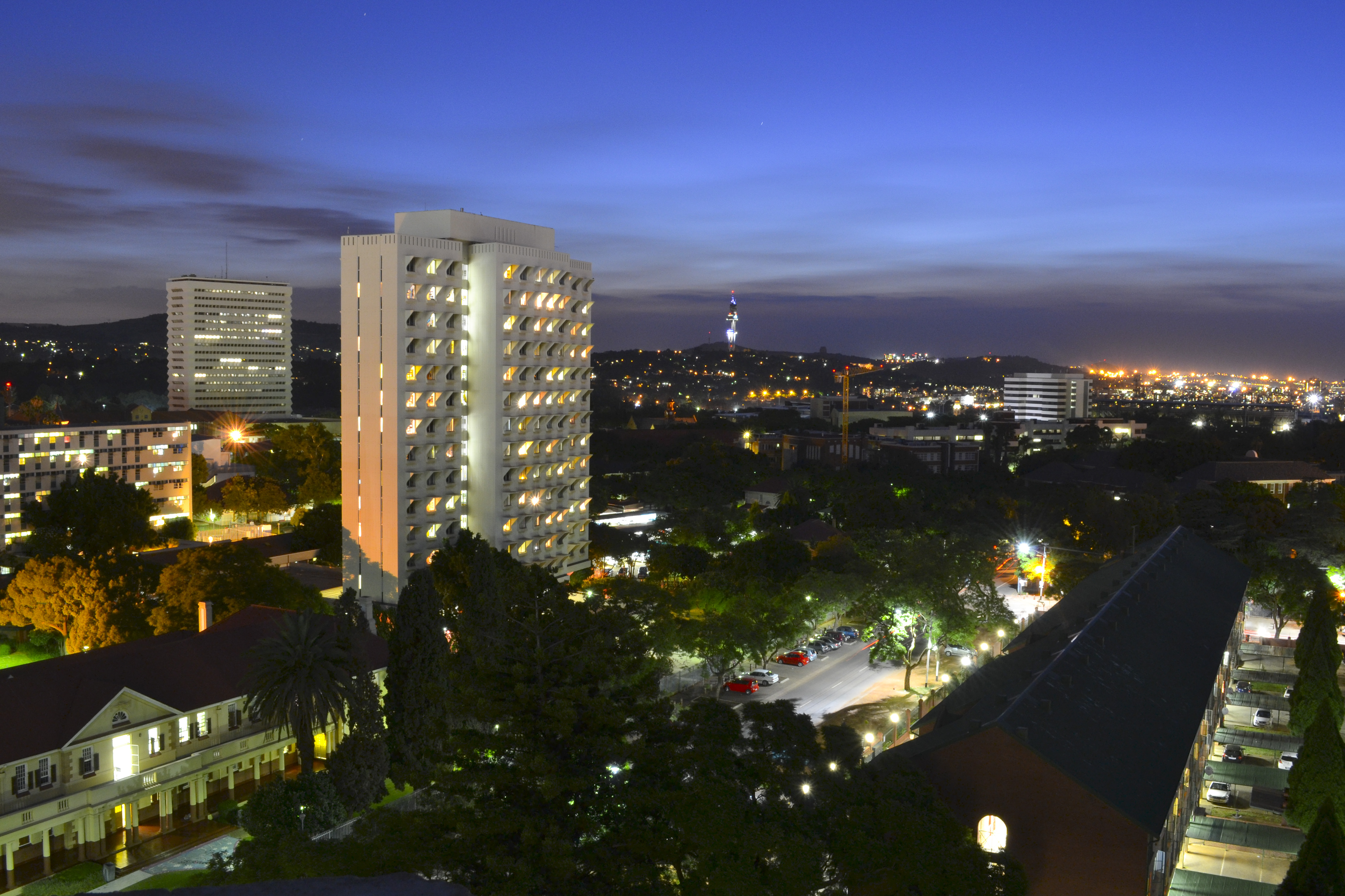 Aerial view of the male and female Residences, Hatfield Campus, University of Pretoria.