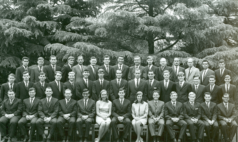 The photograph of the BVSC 1967 class is a formal black and white group photo. The names of the graduates on the photo are: Front (from left to right): IA Scheepers, JM Hofmeyr, MHR Fries, OEB Swacina, JP Kitching, ME Wolf, PD Botha, HM Selfe, BG Gaisford, RC Clark, RA Kobus, H Bark, BCD Schubert ; Second row: SB Buys, LW Marshall, ADB Robey, IZL Berg, D Schaap, WvN le Clus, ADG McGregor, CB McDonald, HR du Preez, DM Burstein, BAP Bagot-Smith, GT Hinze, AG Rose, AE Riley, LDJ Macaulay ; Third row: JSJ Kruger, GVS Turner, J Friedman, TS Kellerman, KJ von Maltzahn, O Marais, JH Grobler, HJ Lucks, JWS Liebenberg, R Cooper, MR Irwin, JA Rens, AH Reitz, G Bouloutis, RJ Minnaar