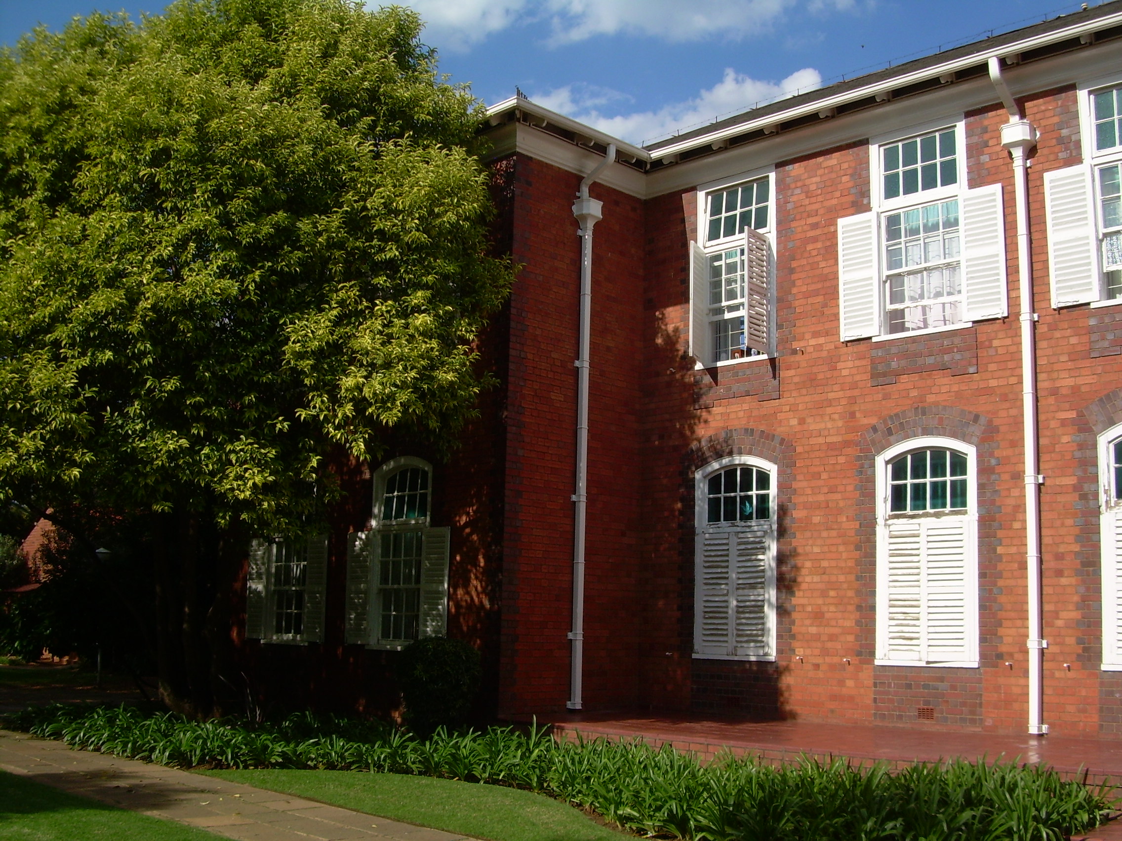 This residence is located on the site of the old Afrikaans Pretoria East Primary School (Laerskool Pretoria Oos). Constructed in the early 1900s, the building was purchased by the University in 1954 and renovated and transformed into a women’s residence called Aanhou Wen (Keep Winning). It was later renamed Roosmaryn and became a first-year annex to the women’s residence Klaradyn. The building is constructed from Pretoria red brick and is similar to other schools built in the area, such as Pretoria Boys and Girls High and Afrikaans Hoër Seuns- and Meisieskool.