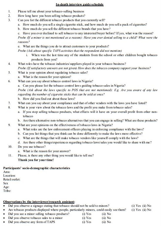 selected tobacco vendors. The face-to-face interviews were aided by a semi-structured interview