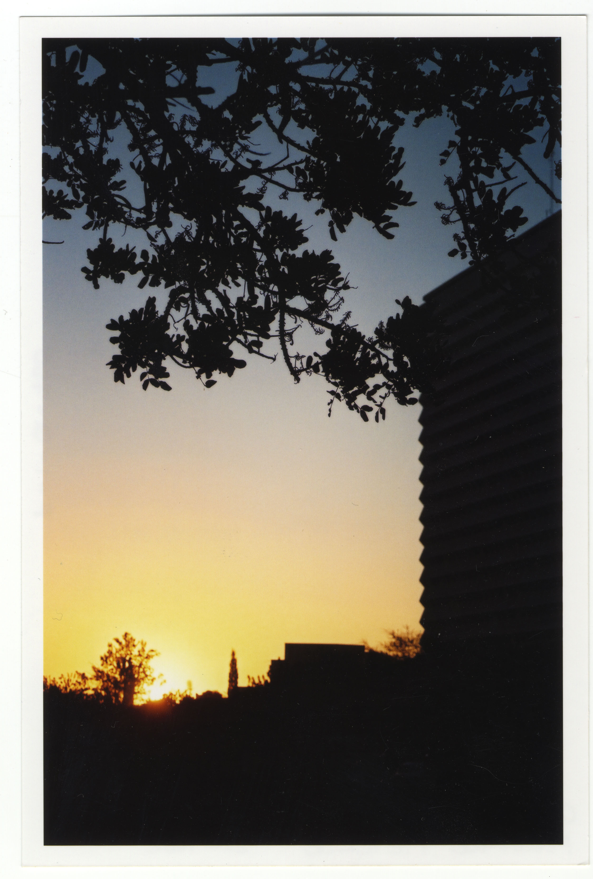 Distant view of the Human Sciences Building with a sunset in the background, Hatfield Campus, University of Pretoria.