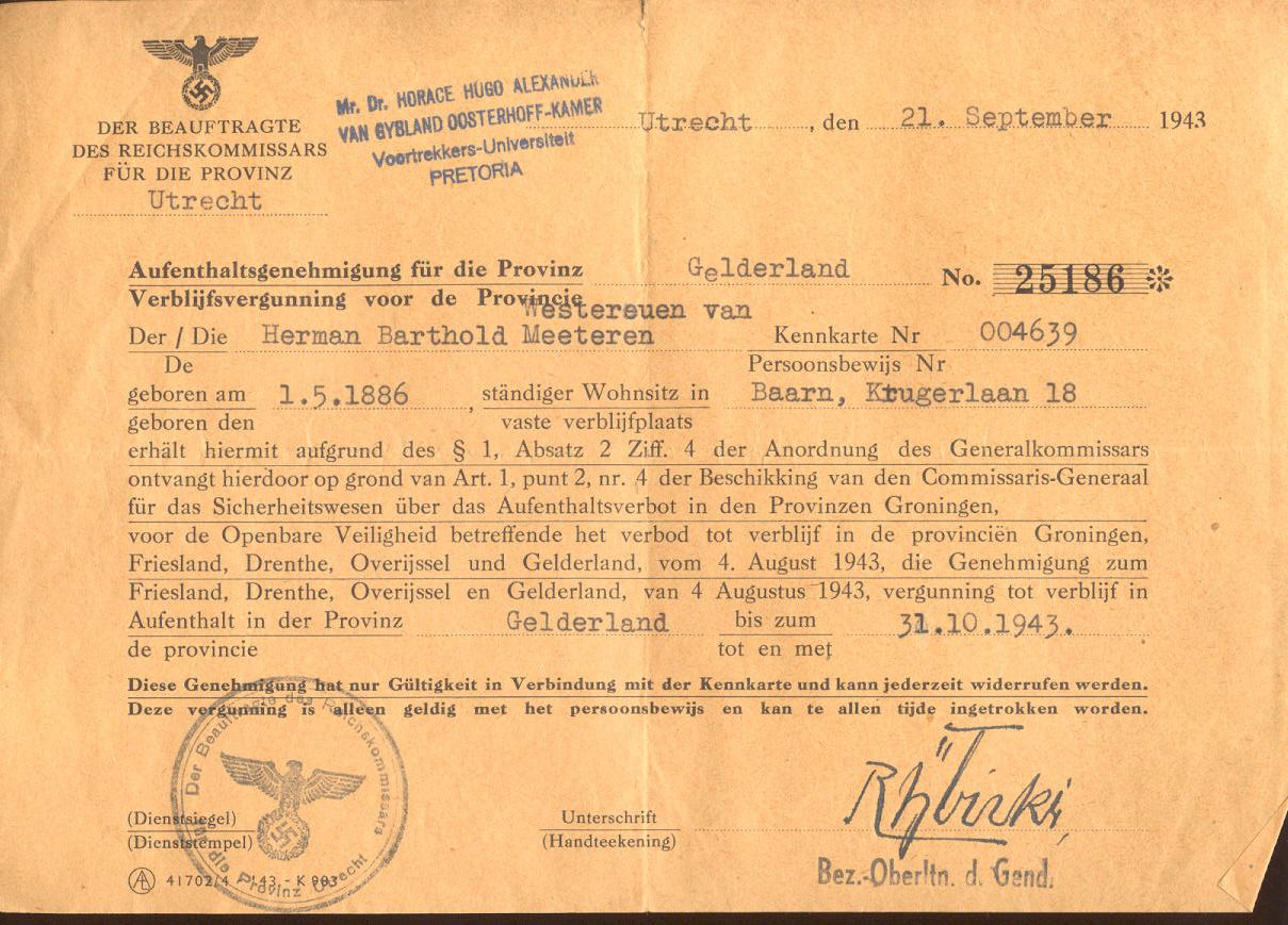 Gelderland, Verblijfsvergunning, Second World War, Westerhouen van Meeteren