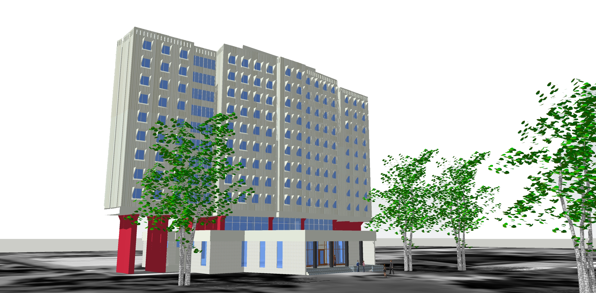 Virtual model (sketch-like day view) of the north facade of the Magrietjie ladies residence in Hatfield. Designed by Brian Sandrock, it was completed in 1981.