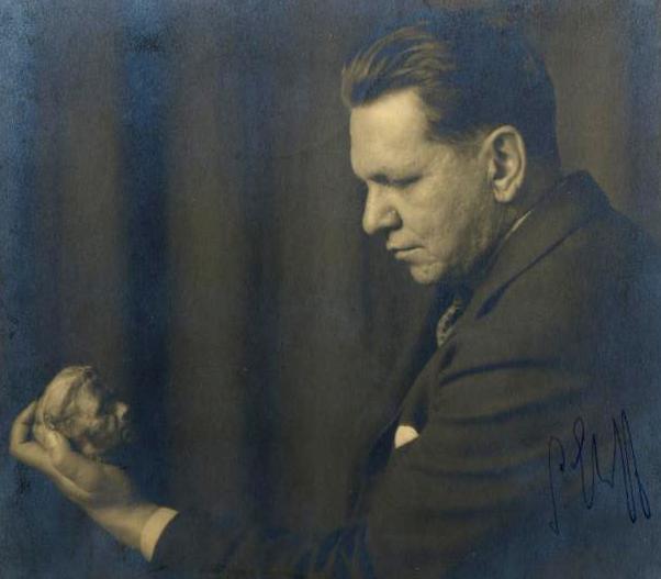 When exactly and why Eloff created this self-portrait is unknown, but it was always presumed that the work was exhibited at the 1912 Individualists Exhibition in the Pretoria City Hall. The shape and size of this small sculpture is comparable to the three know portraits that Eloff created in the same year during his sea voyage from France to South Africa. This bronze is in the collection of the Pretoria Art Museum. Eloff holds his self-portrait in one of the photographs.