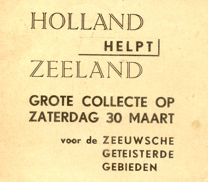During the Second World War some parts of the Netherlands were worst affected than others. This is a collection notice for collecting food and clothes for the Province Zeeland.