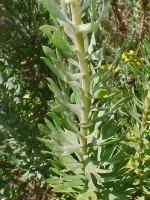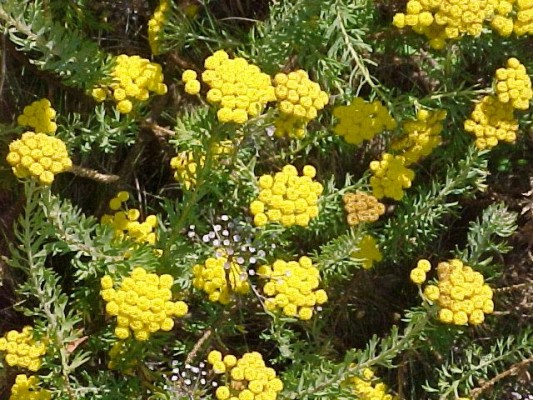 BOTANICAL DESCRIPTION: General: A perennial, aromatic shrub + 1,3 m high. Not very palatable. Leaves: The grey-green to bright green alternate leaves are up to 40 mm long, ending in three to five “fingers”. Flowers: Bright yellow, composite. November - March.