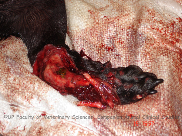 - Photo 1: Multiple bone fractures in the distal front limb of a dog