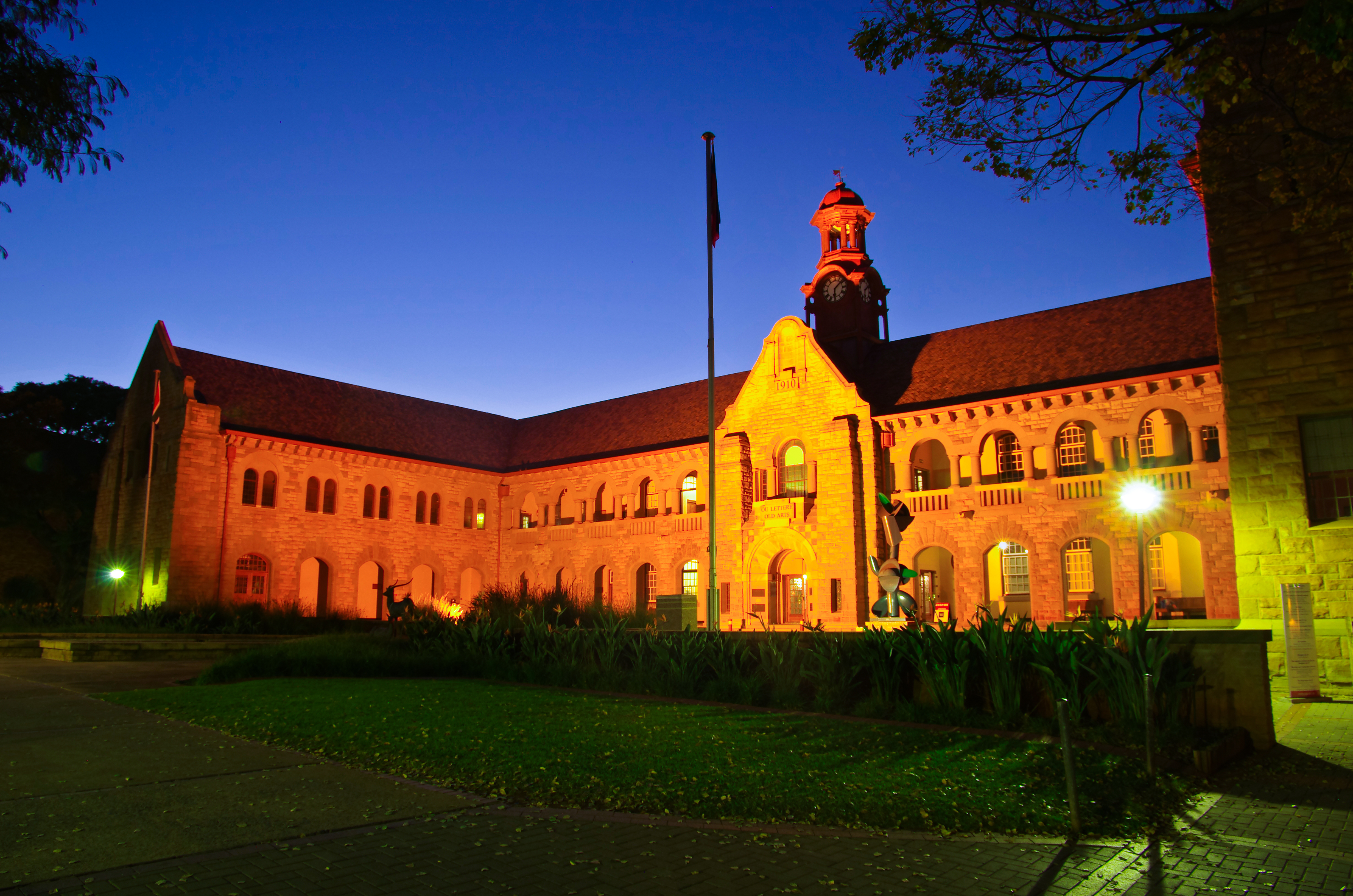 Distant view of the Old Arts Building taken at night, Hatfield Campus, University of Pretoria.