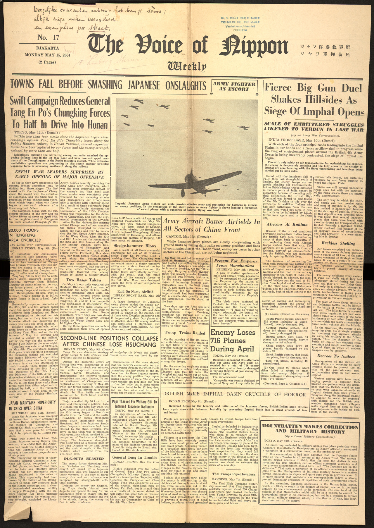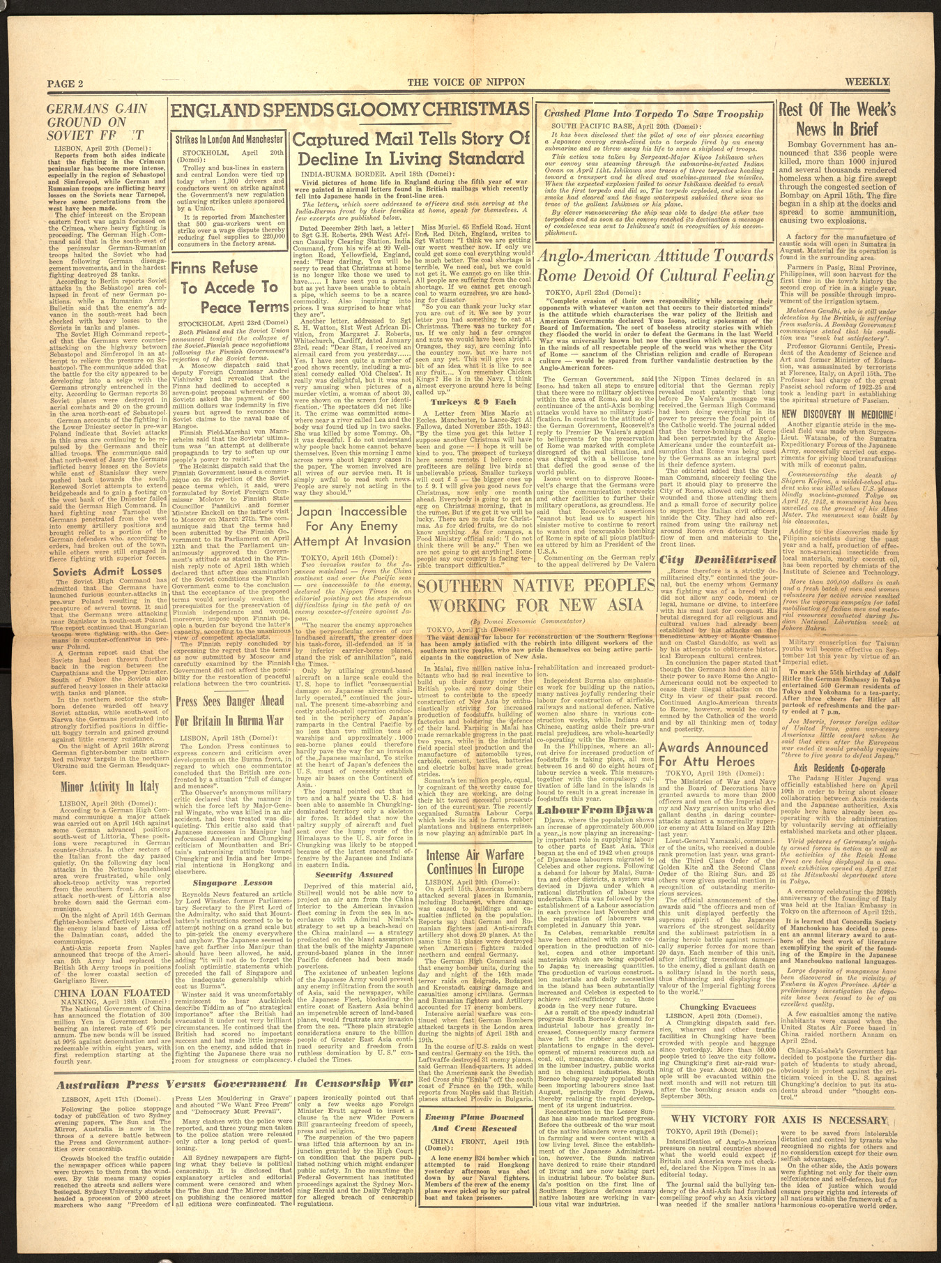 The Voice of Nippon weekly, no 17. Japanese propaganda newspaper for interned prisoners in Djakarta.