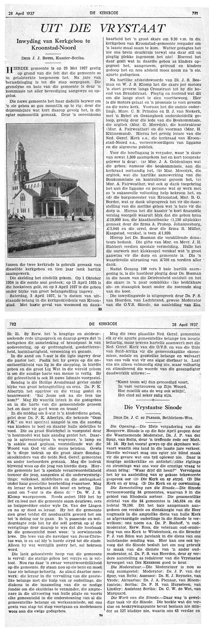 Moerdijk, Gerard, Kroonstad, South African church buildings, Suid-Afrikaanse kerkgeboue, Bosman, ds. J. S., Klomp, ds. W. J. S., Prinsloo, C. B., Van Niekerk, B. J., Fairweather, A., Kühnemund, H., Geldenhuys, J. A., Border, B. G., Slabbert, J. H., Van Heerden, ds. P. S., Albertyn, ds. P. K., Moerdyk, Gerard