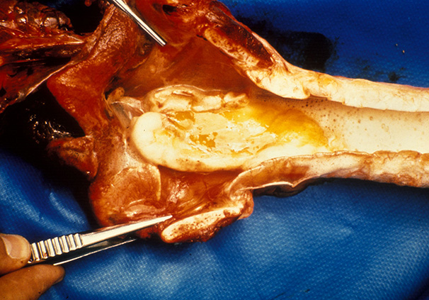 Acute African horse sickness (AHS) : serofibrinous coagulion in the trachea and larynx