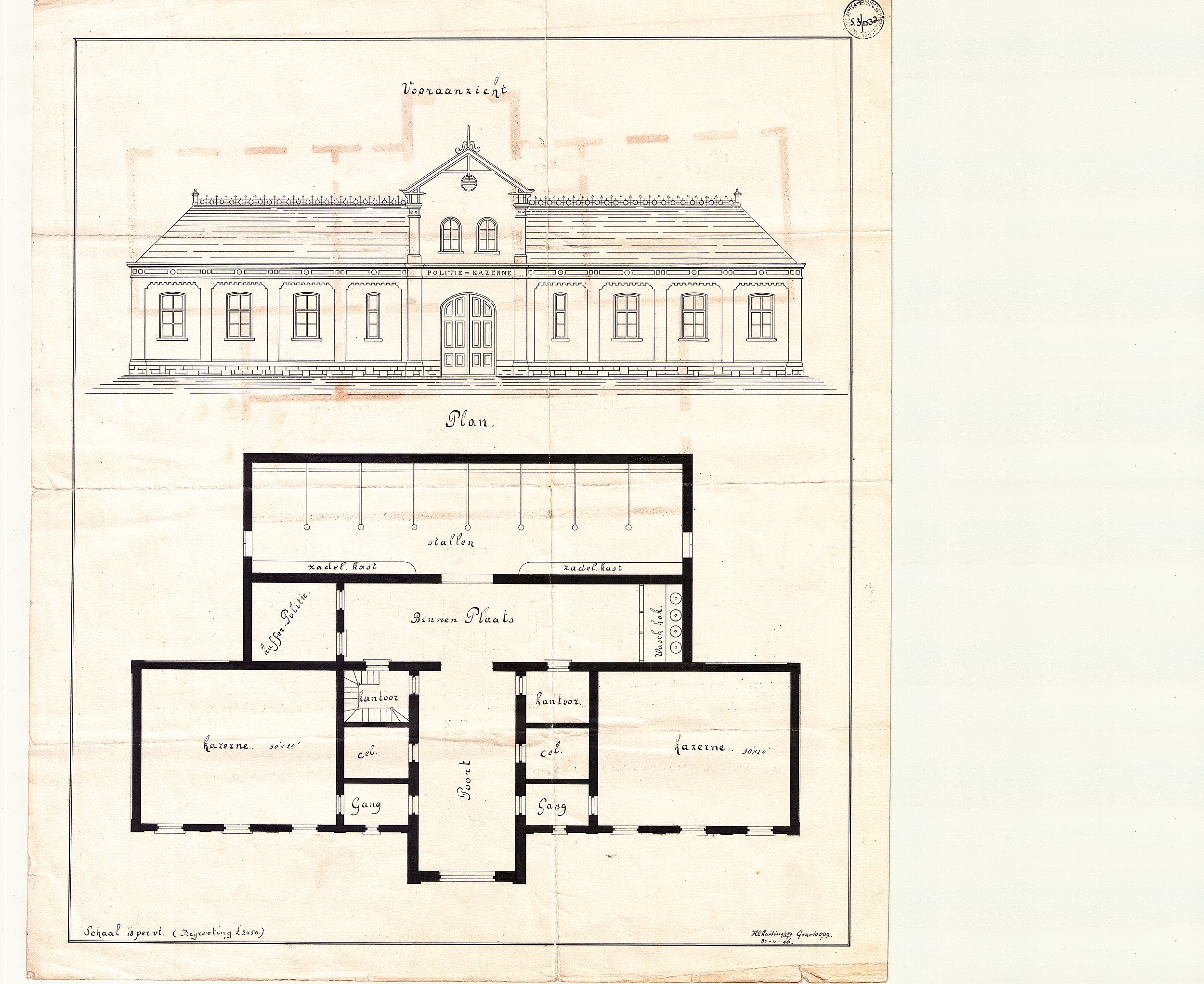 Digitised version of National Archive file S.3/1532. "Vooraansicht" (Front Elevation), Police Barracks, Potchefstroom