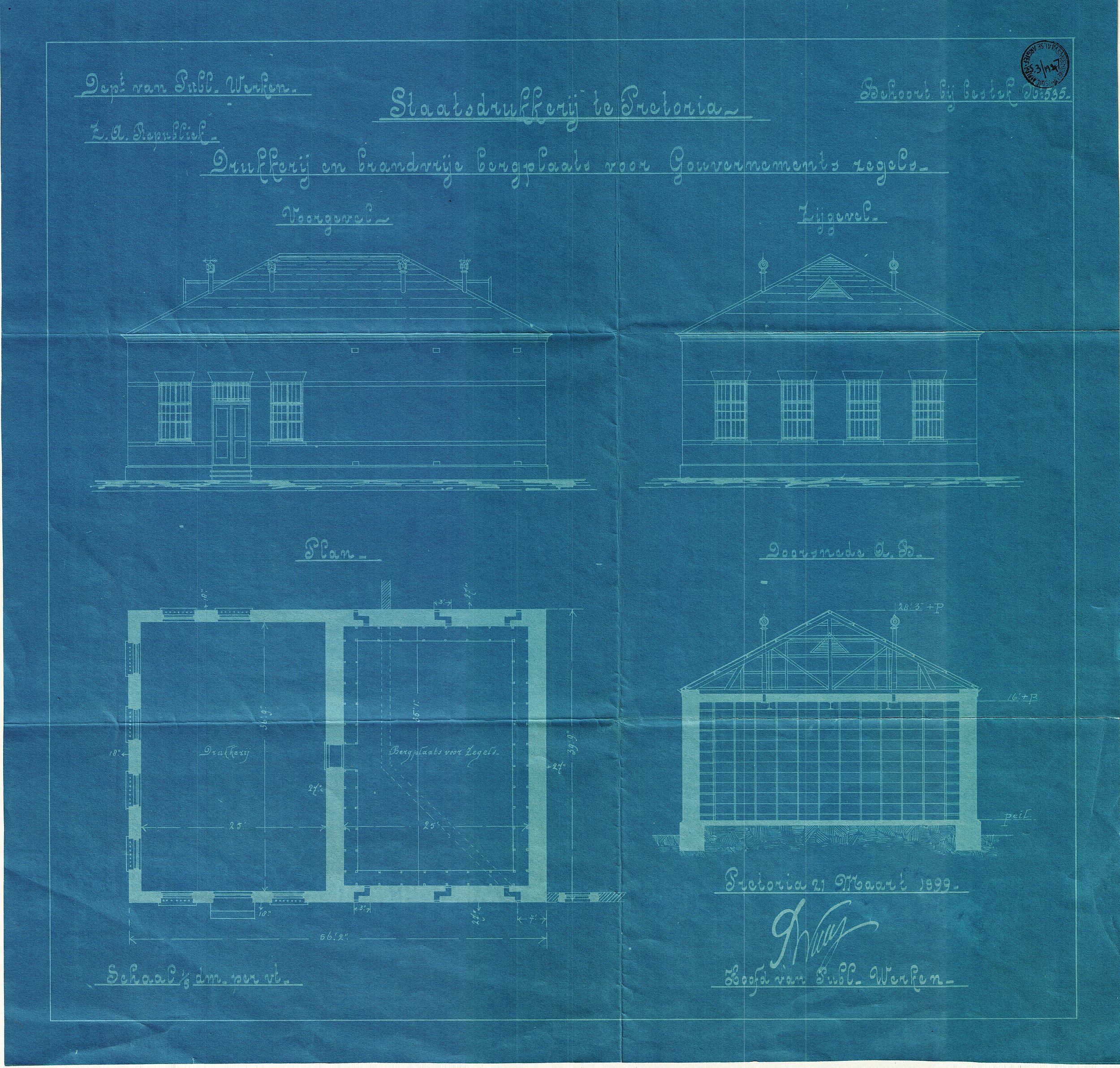 Staatsdrukkerij te Pretoria: Drukkerij en brandvrije bergplaats voor Goevernements zegels