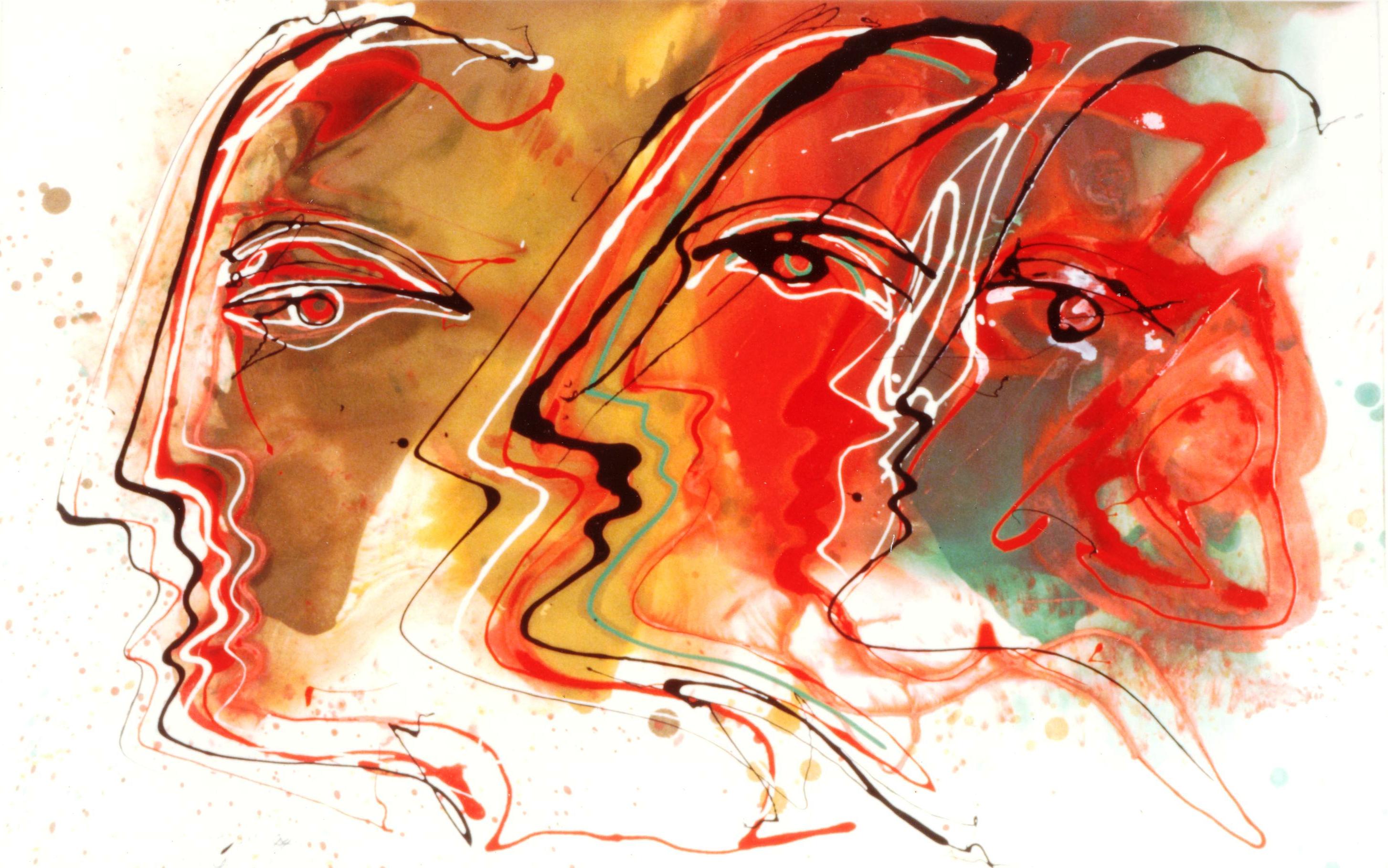 94-64 'Heads' is part of a series painted from 1994 to 1995. This work forms the pinnacle of his paintings done on paper