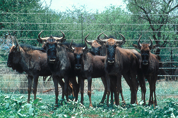 A group of blue wildebeest calves