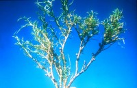 | dc.description.abstract | BOTANICAL DESCRIPTION: General: This is a many-branched, woody shrublet, growing up to 0,5 m in height. It sometimes occurs as an invader. Leaves: Small narrow leaves are arranged opposite each other on pale yellowish branchlets that end in sharp spikes. The leaf base is clasping the stem. Flowers: The small yellowish to white flower heads are stalkless. Seed: The seed is small, oblong, without a crown of hairs or scales (pappus). | en |