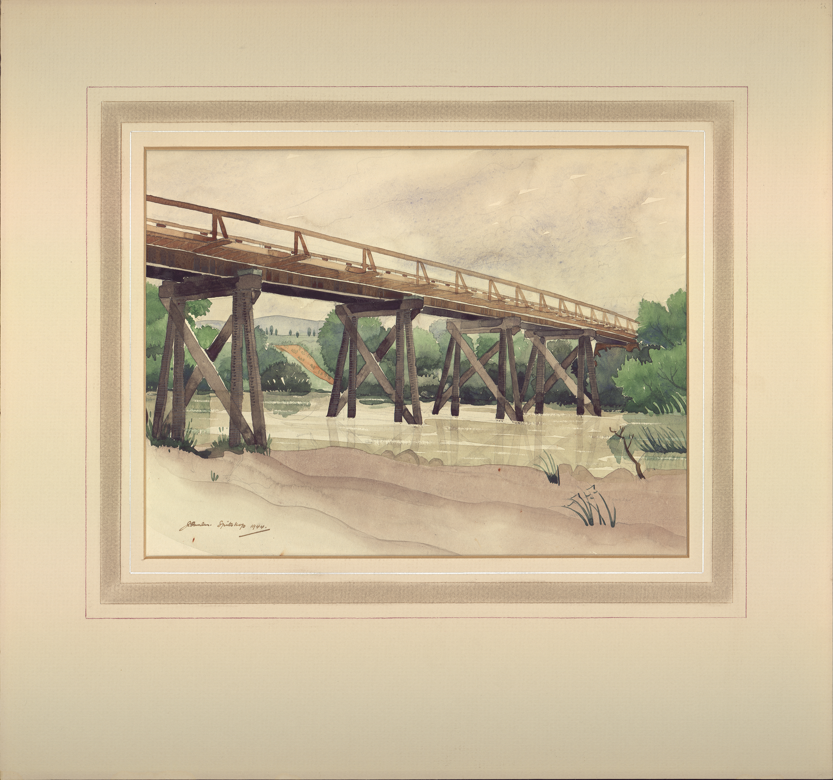 | dc.description | Rendition of a typical army engineers' bridge. John Fassler took every opportunity to sketch and paint the world around him. A miniature wooden drawing board, pencils, paint, and paper were always near at hand. | en_ZA |
