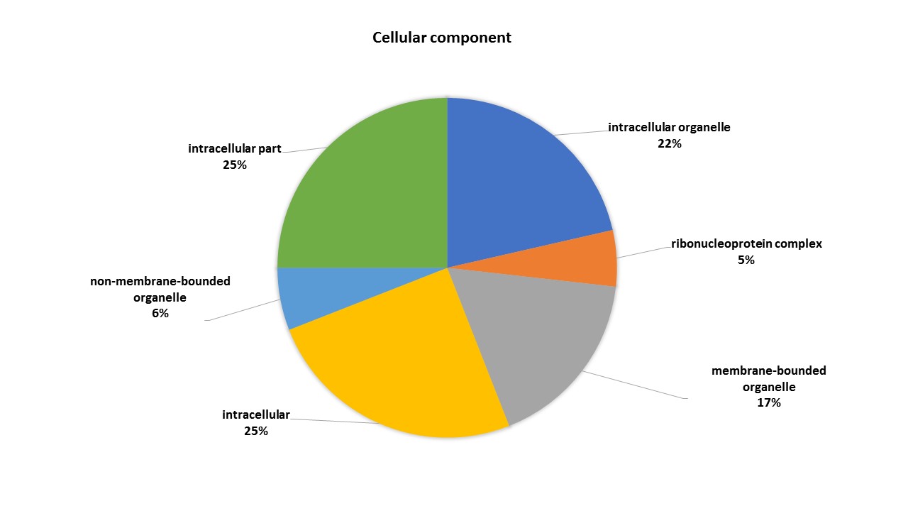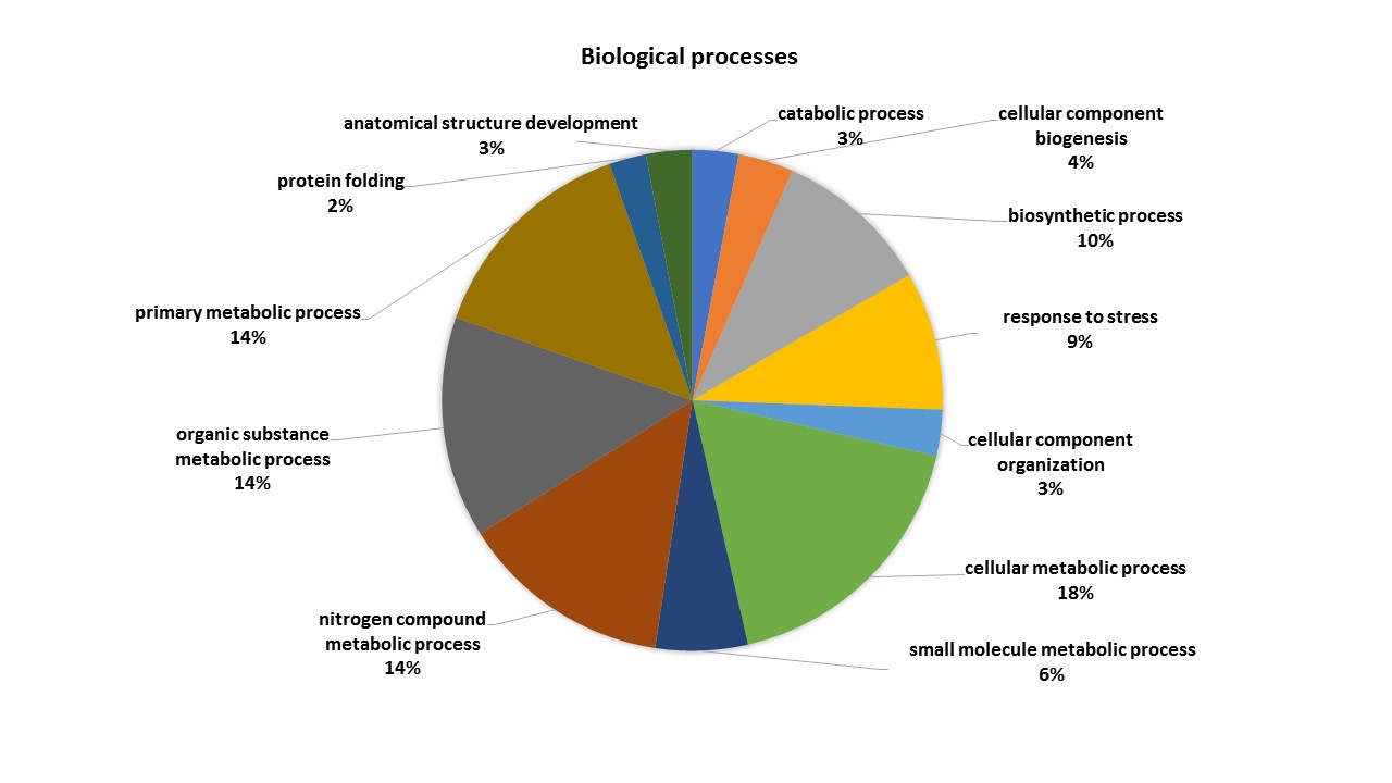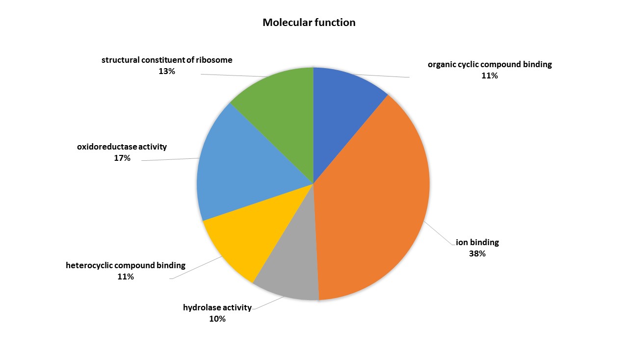 FIGURE S1 : Proportional contribution of proteins expressed in RYNO3936 to the different functional categories, where (A) biological processes; (B) cellular component; and (C) molecular function.
